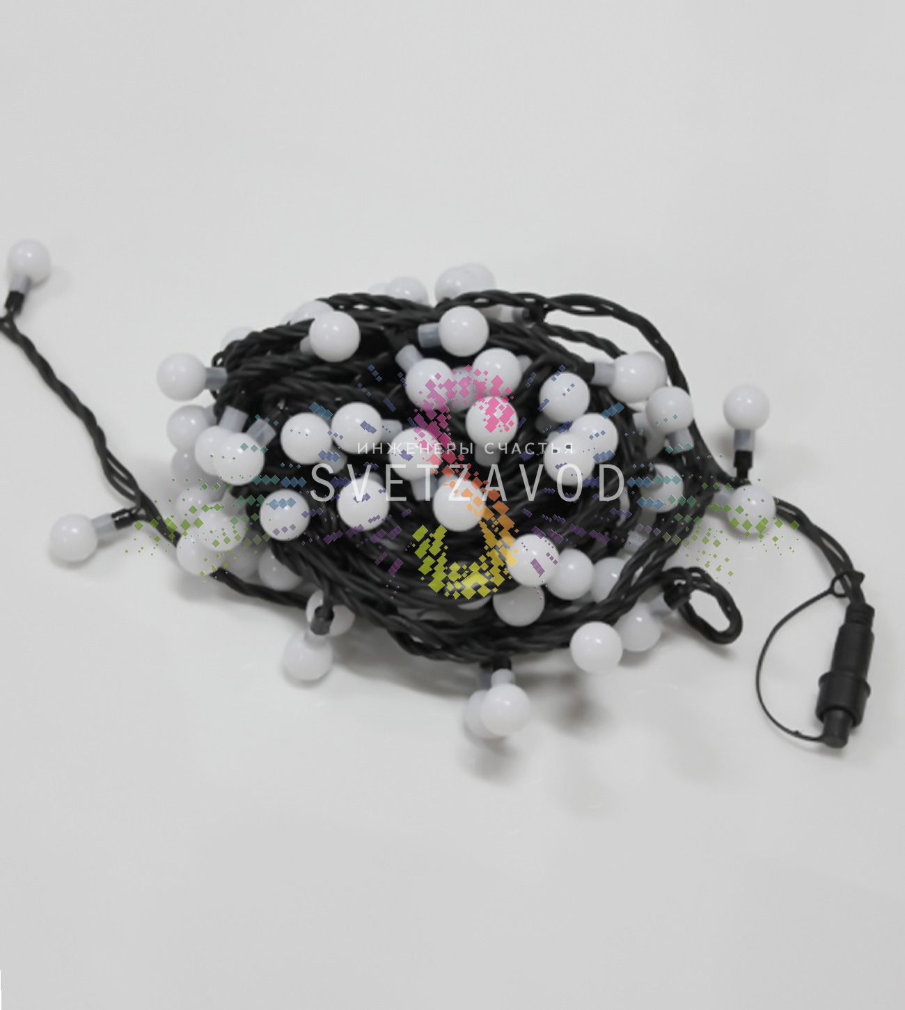 Идеальное решение для декора помещений и уличного пространства. Гирлянда с шариками создает равномерное яркое свечение без мерцания.