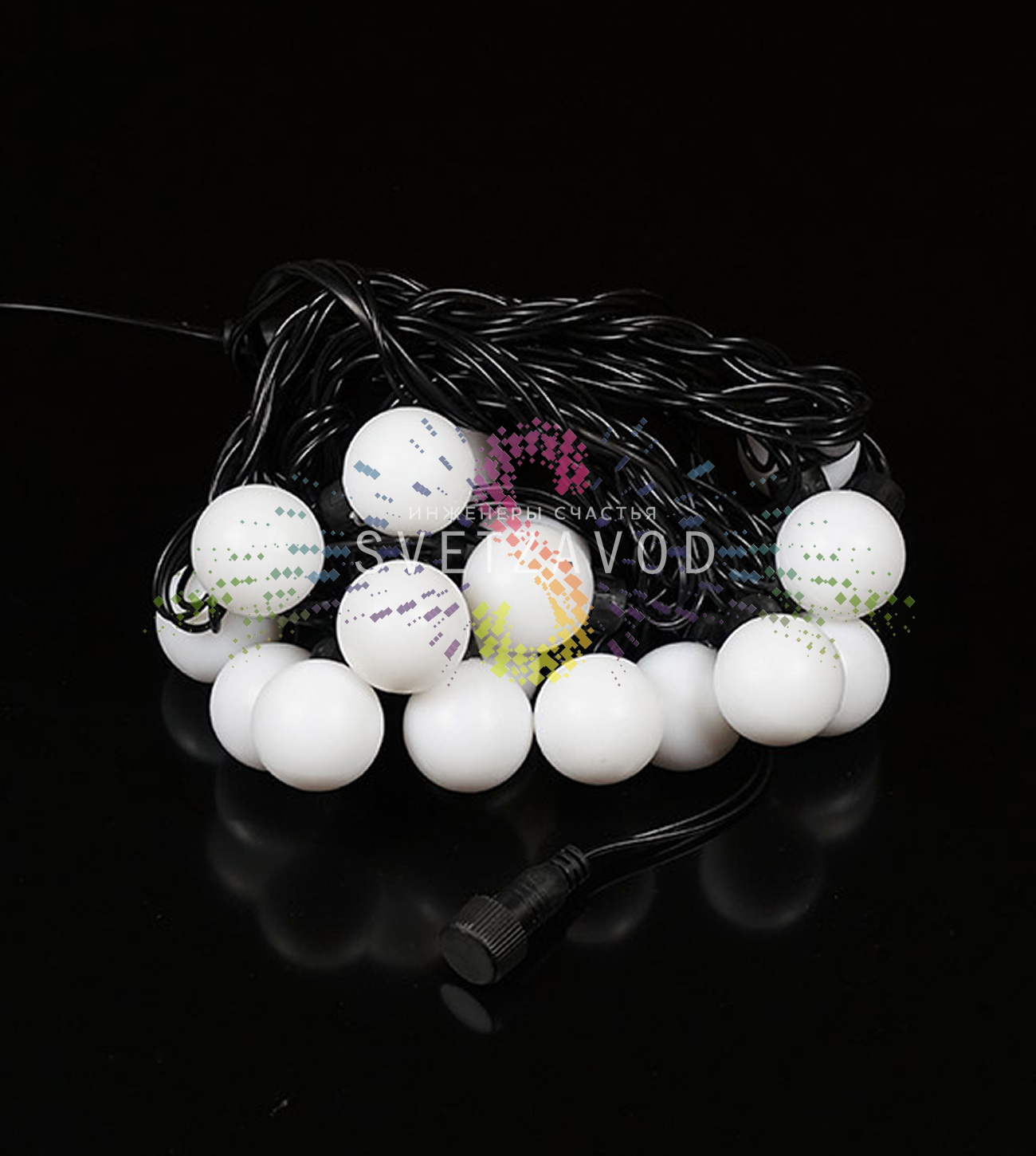 Экологичность и долговечность: Светодиодные шарики потребляют минимальное количество электроэнергии при максимальной светоотдаче. Черный ПВХ-шнур обладает повышенной устойчивостью к ультрафиолету и перепадам температур от -25°C до +40°C. Шаг расположения шариков 27,7 см обеспечивает равномерное распределение света без темных зон.