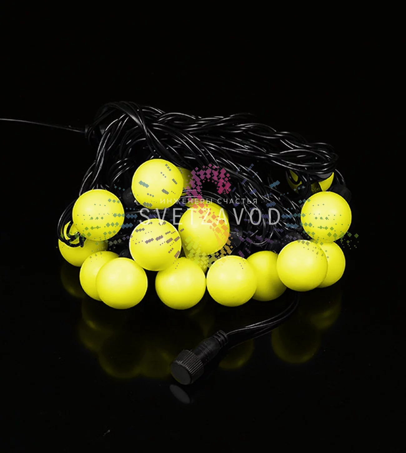 Решение: Гирлянда Шарики Ø 38мм – это готовое, профессиональное решение для декора. Черный провод длиной 5 метров с 18 желтыми светящимися шариками и встроенным блоком питания позволяет сразу начать оформление. Это именно та гирлянда с шариками уличная, заказать которую стоит для надежного и красивого результата.
