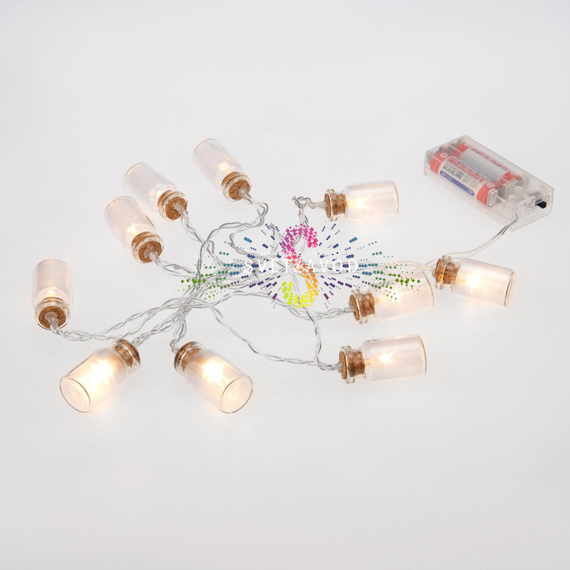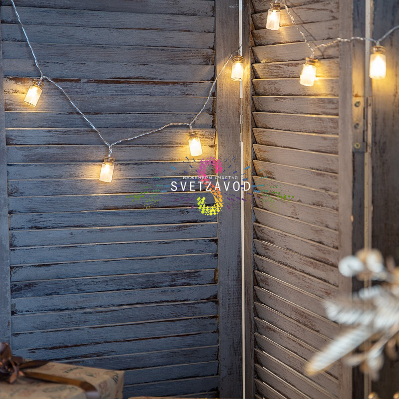 Светодиодная гирлянда «Баночки» от Neon-Night создает мягкое теплое белое свечение, преображая пространство. 10 декоративных элементов в виде баночек равномерно распределены по гибкому прозрачному проводу длиной 1.5 метра.