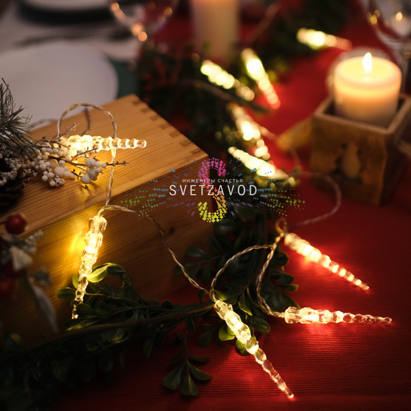 Светодиодная гирлянда «Сосульки» длиной 1,5 метра создает элегантное праздничное настроение. Теплый белый свет диодов обеспечивает мягкое и уютное свечение, идеальное для вечернего оформления.