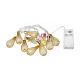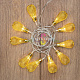 Десять светодиодов с теплым желтым свечением равномерно расположены на гибком проводе с шагом 15 см, создавая гармоничный световой рисунок. Режим фиксинга (постоянное свечение) обеспечивает стабильное и комфортное для глаз освещение, идеальное для фонового декора. Ажурные золотистые колпачки-фонарики мягко рассеивают свет, устраняя эффект слепящих точек.
