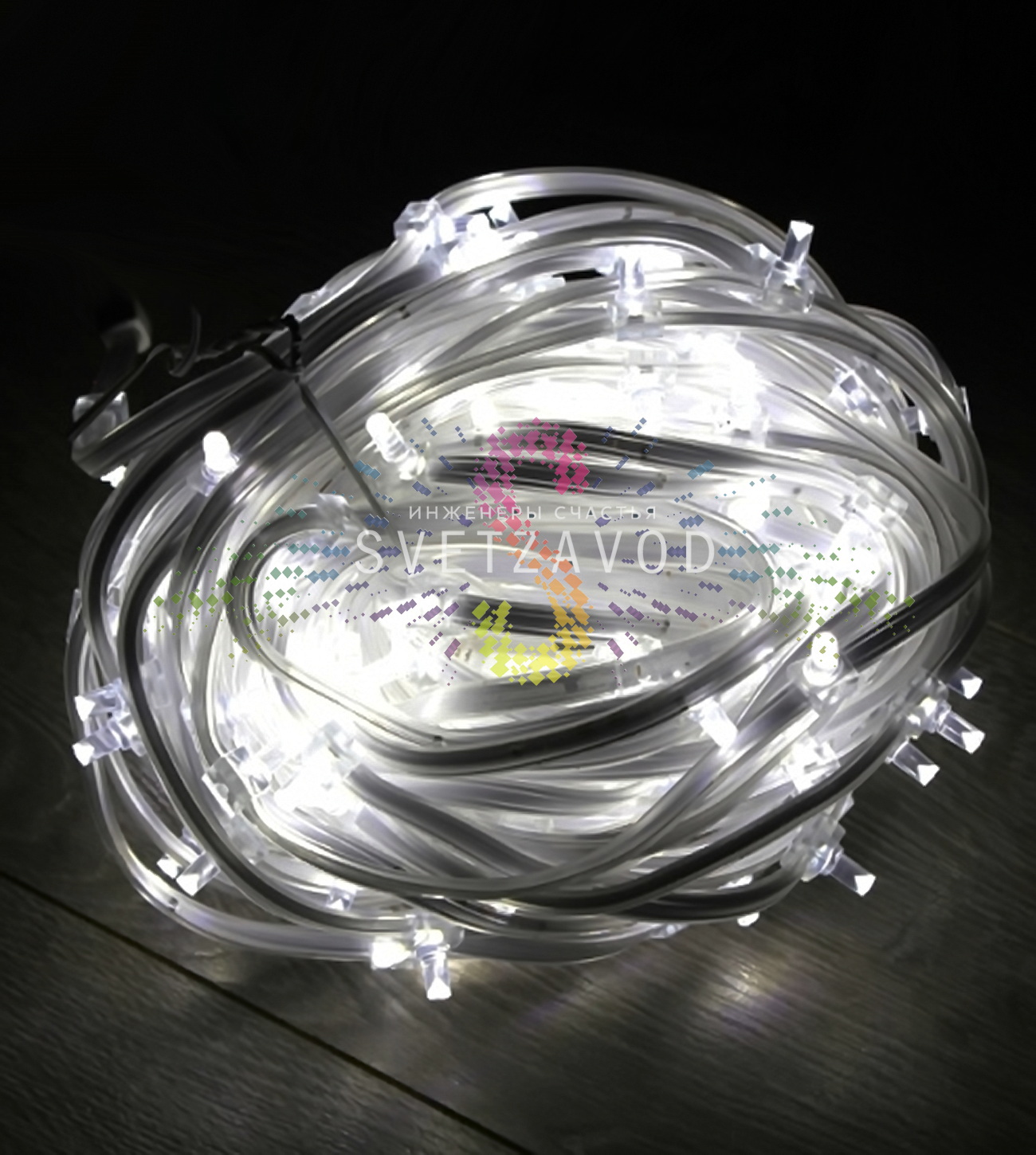 Продуманная конструкция: Каждый светодиод защищен специальными пластиковыми колпачками, что значительно повышает механическую прочность и долговечность системы. Прозрачная ПВХ-оболочка кабеля практически незаметна при монтаже, создавая эффект парящих в воздухе огней.