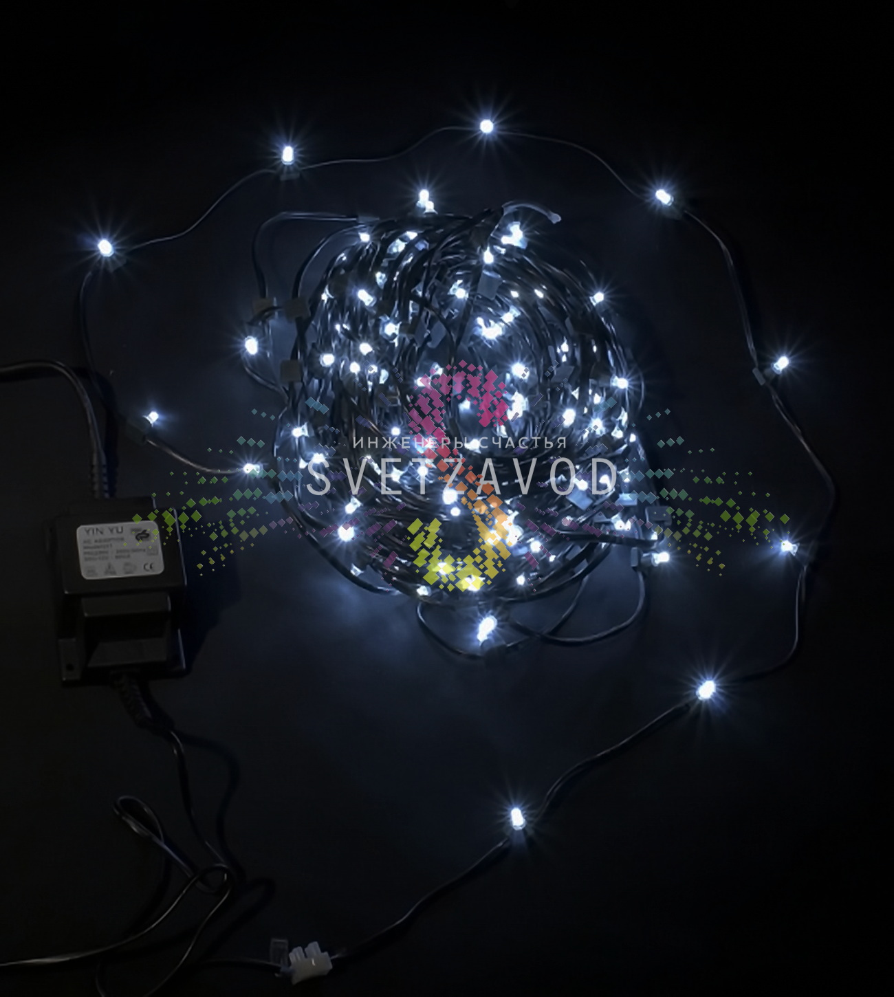 Конструкция гирлянды продумана для простоты монтажа и долговечности. Провод выполнен из качественного ПВХ, устойчивого к ультрафиолету и перепадам температур.