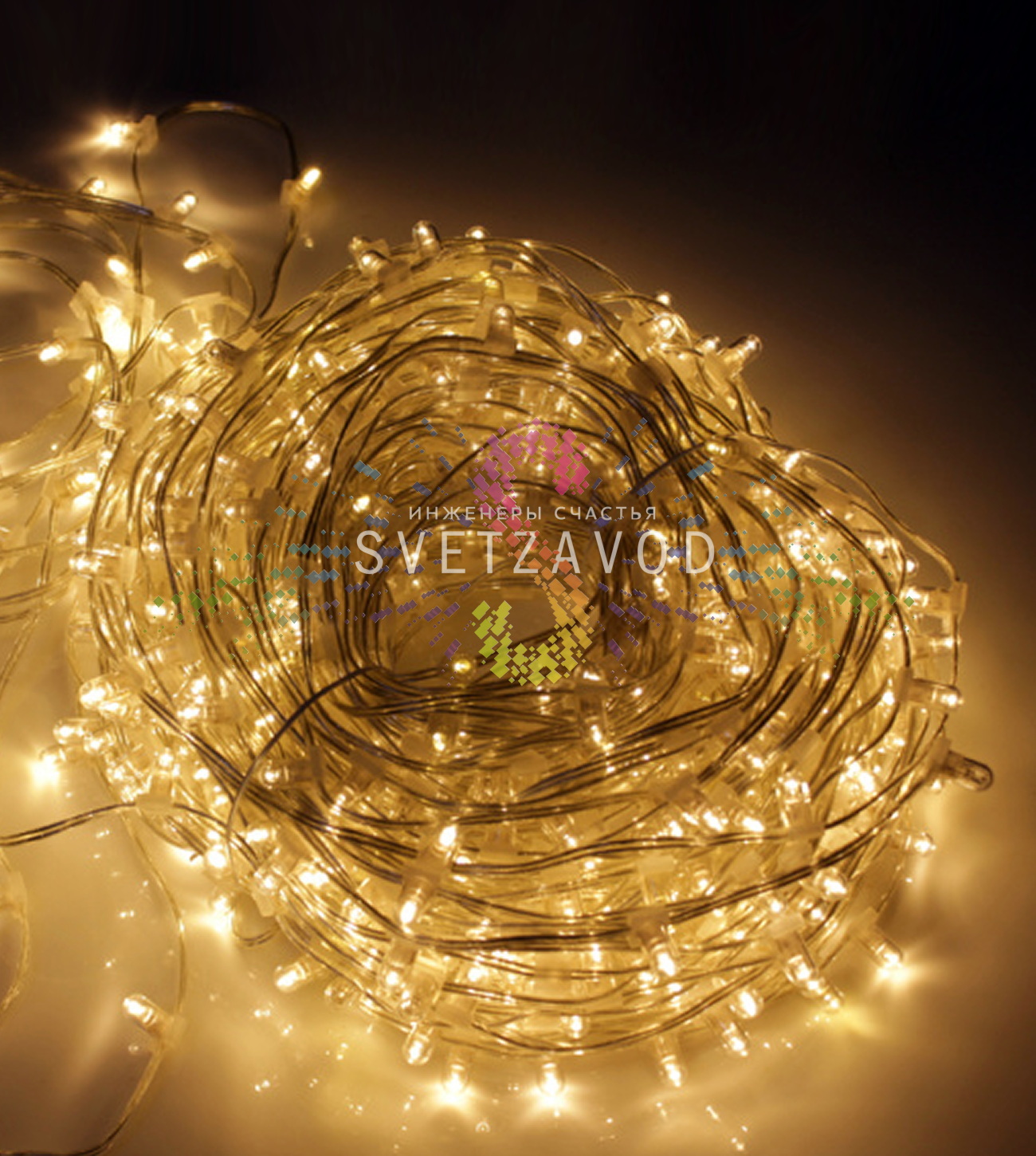 Гирлянда состоит из прозрачного ПВХ-кабеля, на котором через равные промежутки расположены 666 ярких светодиодов теплого белого свечения. Система поставляется в удобной бухте длиной 100 метров.