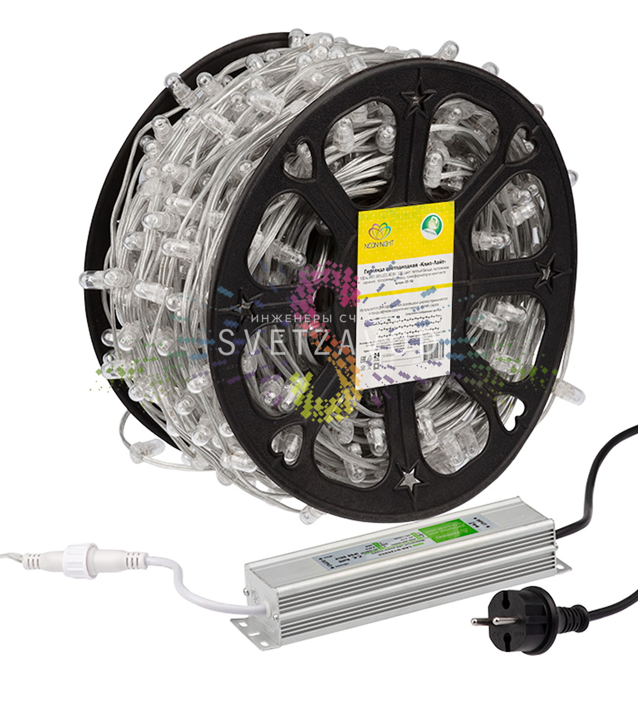 Данная модель поставляется в бухтах по 100 метров с прозрачным кабелем и холодным белым свечением, идеально подходит для продолжительной эксплуатации на открытом воздухе.