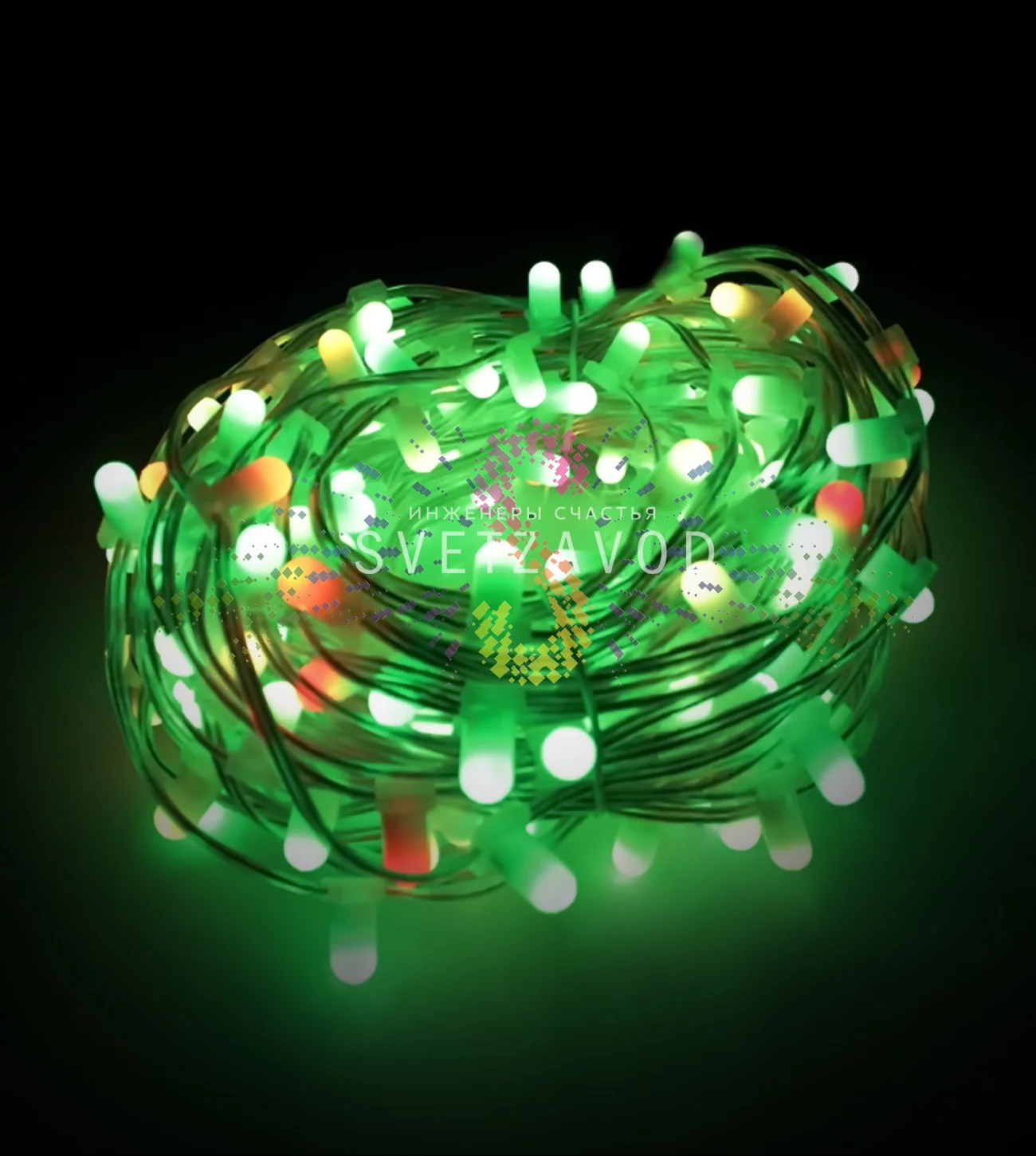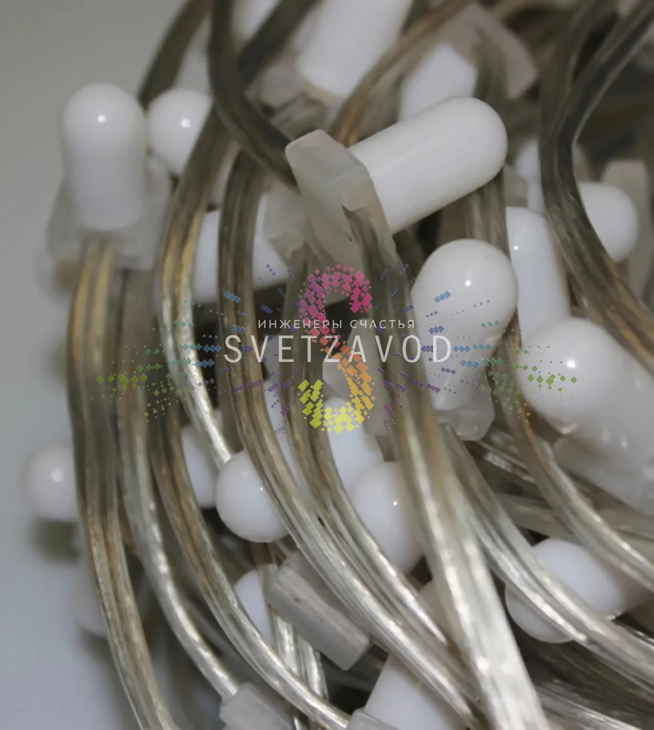 Гибкость монтажа: Прозрачный провод и расстояние между диодами 15 см позволяют аккуратно и незаметно крепить гирлянду на объектах любой формы.
