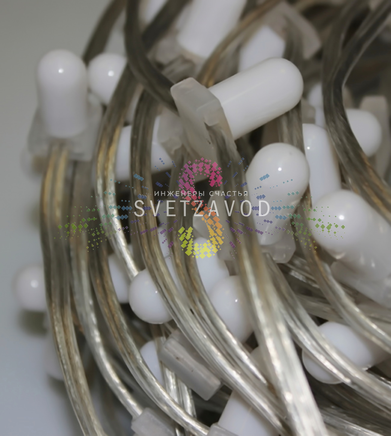 Данная модель Клип Лайта поставляется в бухтах по 100 метров. Гирлянда оборудована защитными колпачками на диодах.Обратите внимание, что гирлянда поставляется без блока питания, его можно приобрести отдельно. Для придания свечению динамики, в системе запрограммирован эффект смены цвета на каждом диоде.