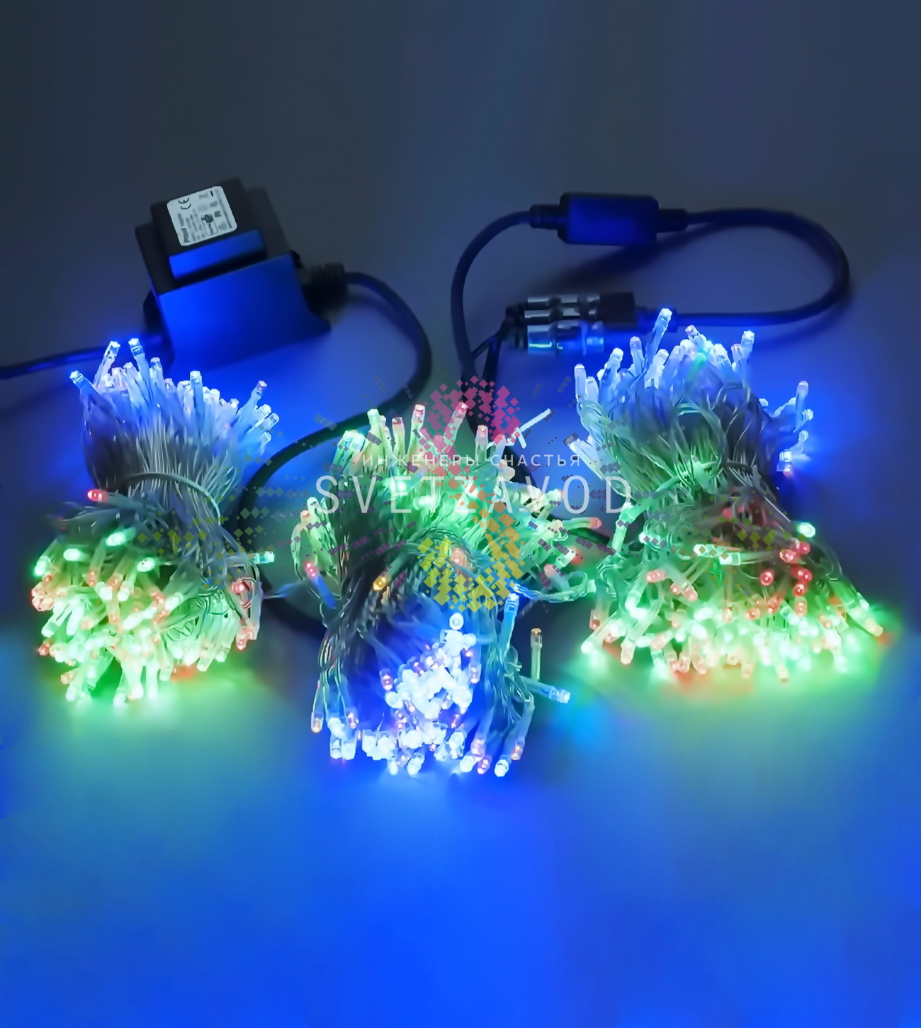 Продуманная конструкция: Прозрачный ПВХ-кабель практически незаметен днем и не нарушает эстетику природного ландшафта. Специальный разветвитель позволяет одновременно подключать все три луча к блоку питания. Фиксинг-режим обеспечивает постоянное равномерное свечение без мерцания. Прочные клипсы надежно фиксируют светодиоды на ветках.