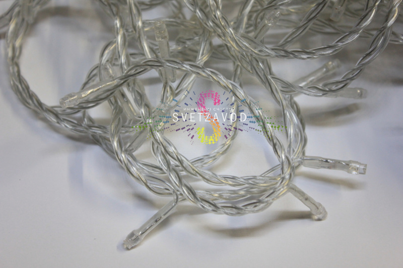 Гирлянда выполнена в ярком красном цвете с прозрачной ПВХ-изоляцией, что обеспечивает насыщенное свечение и долговечность эксплуатации в различных условиях.