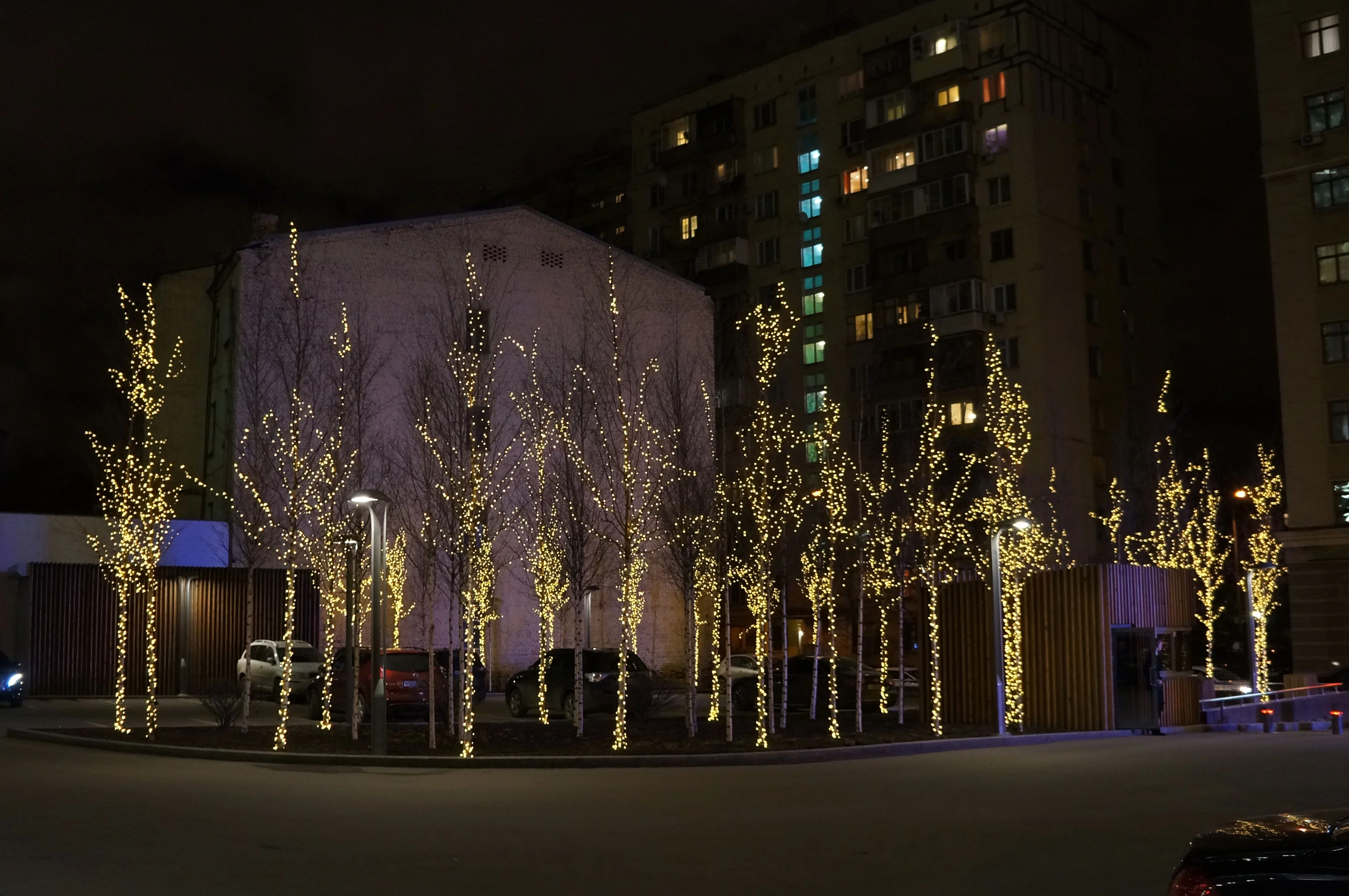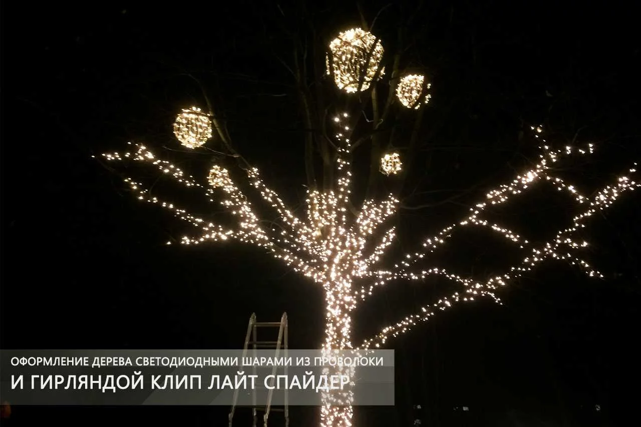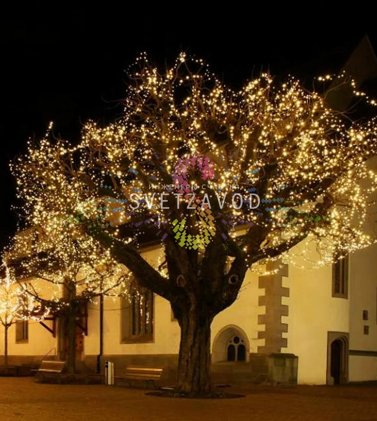Совет эксперта: Для оформления деревьев с раскидистой кроной оптимально использовать гирлянды Спайдер - они создают объёмный эффект свечения благодаря радиальному расположению лучей от центрального узла. Ваш комплект с 5 нитями по 20м идеально подходит для средних и крупных деревьев, арок и колонн. Монтаж максимально прост: достаточно закрепить центральное кольцо на стволе, а лучи свободно расположить по ветвям. Для равномерного освещения стволов выбирайте Клип Лайт, а для быстрого и эффектного оформления деревьев с развитой кроной - Спайдер.