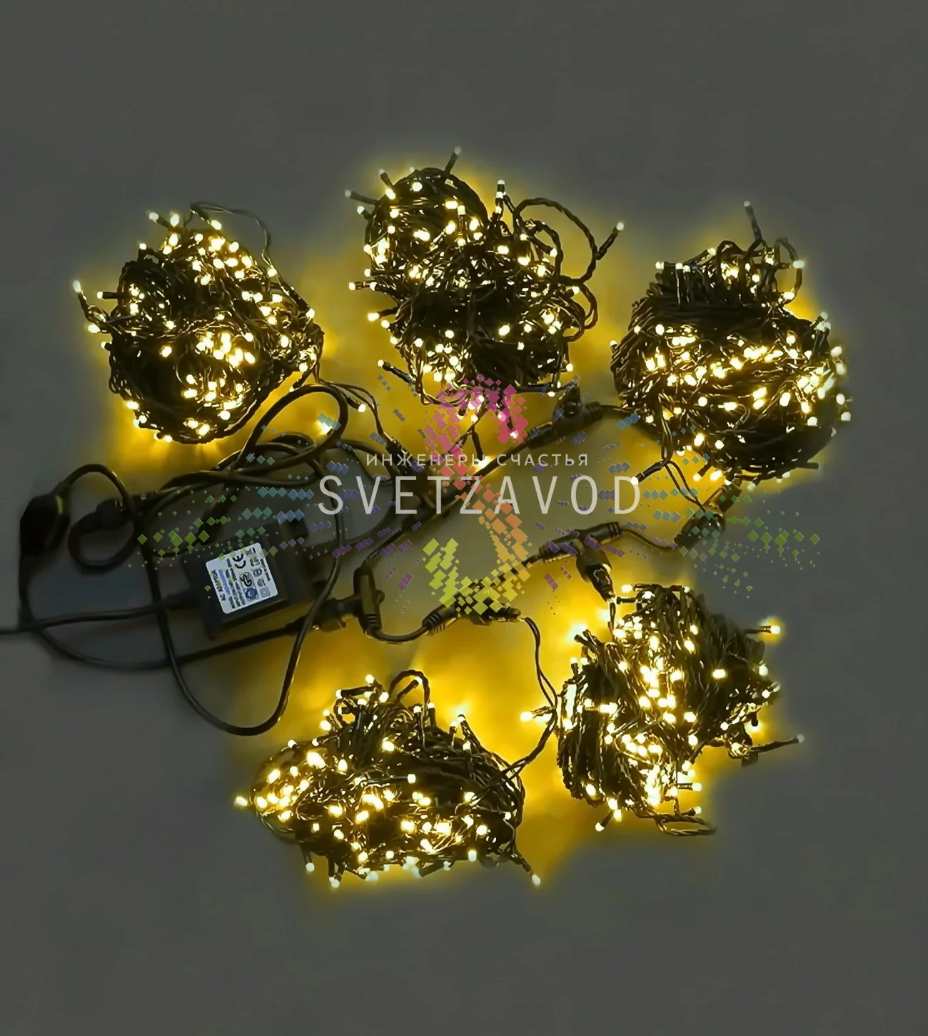 Экономия времени и средств: Вы покупаете готовый комплект «под ключ»: 100 метров гирлянды, разветвитель и блок питания. Не нужно ничего докупать или рассчитывать.