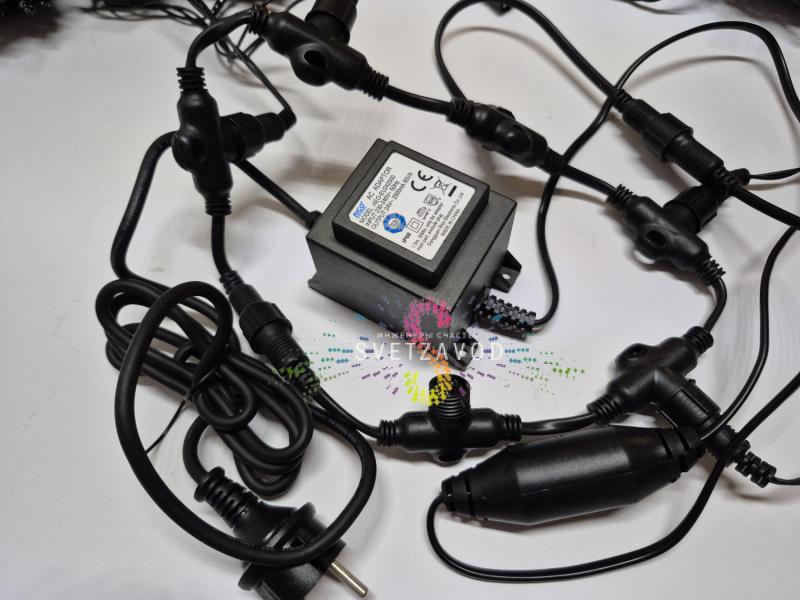 Клип Лайт Спайдер, 24В, 3 нити по 20м, теплый белый, мерцающий, WF, черный ПВХ, IP54