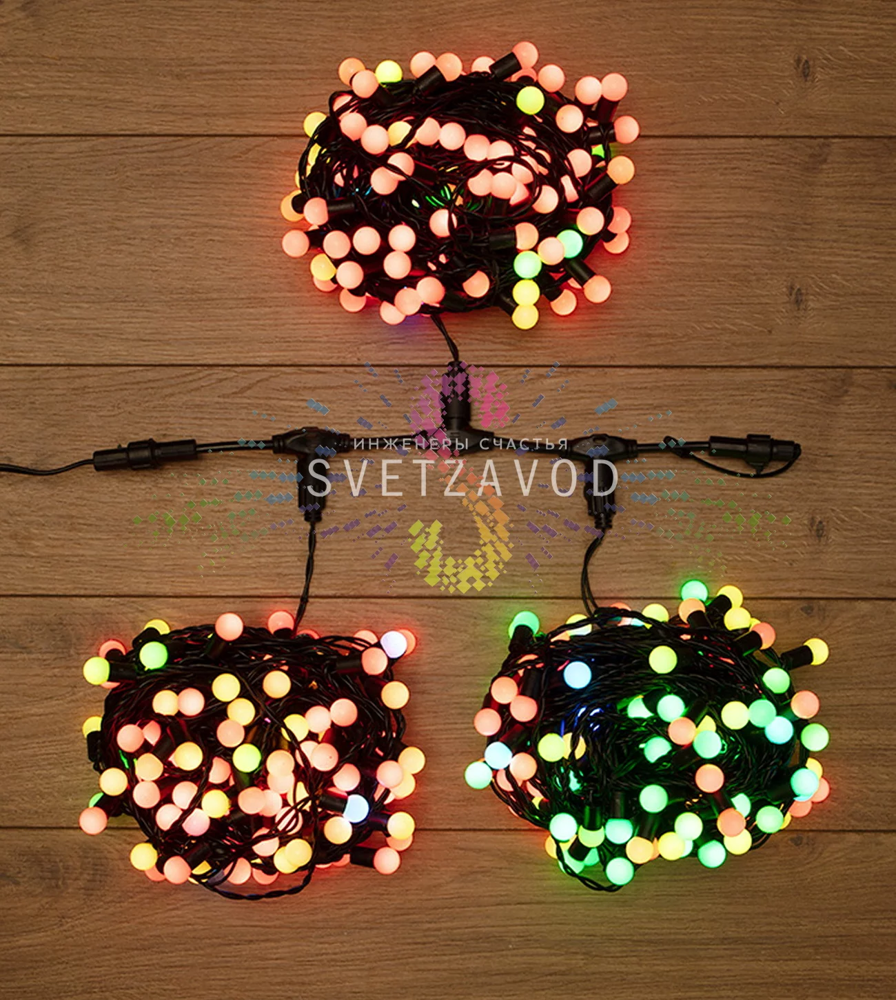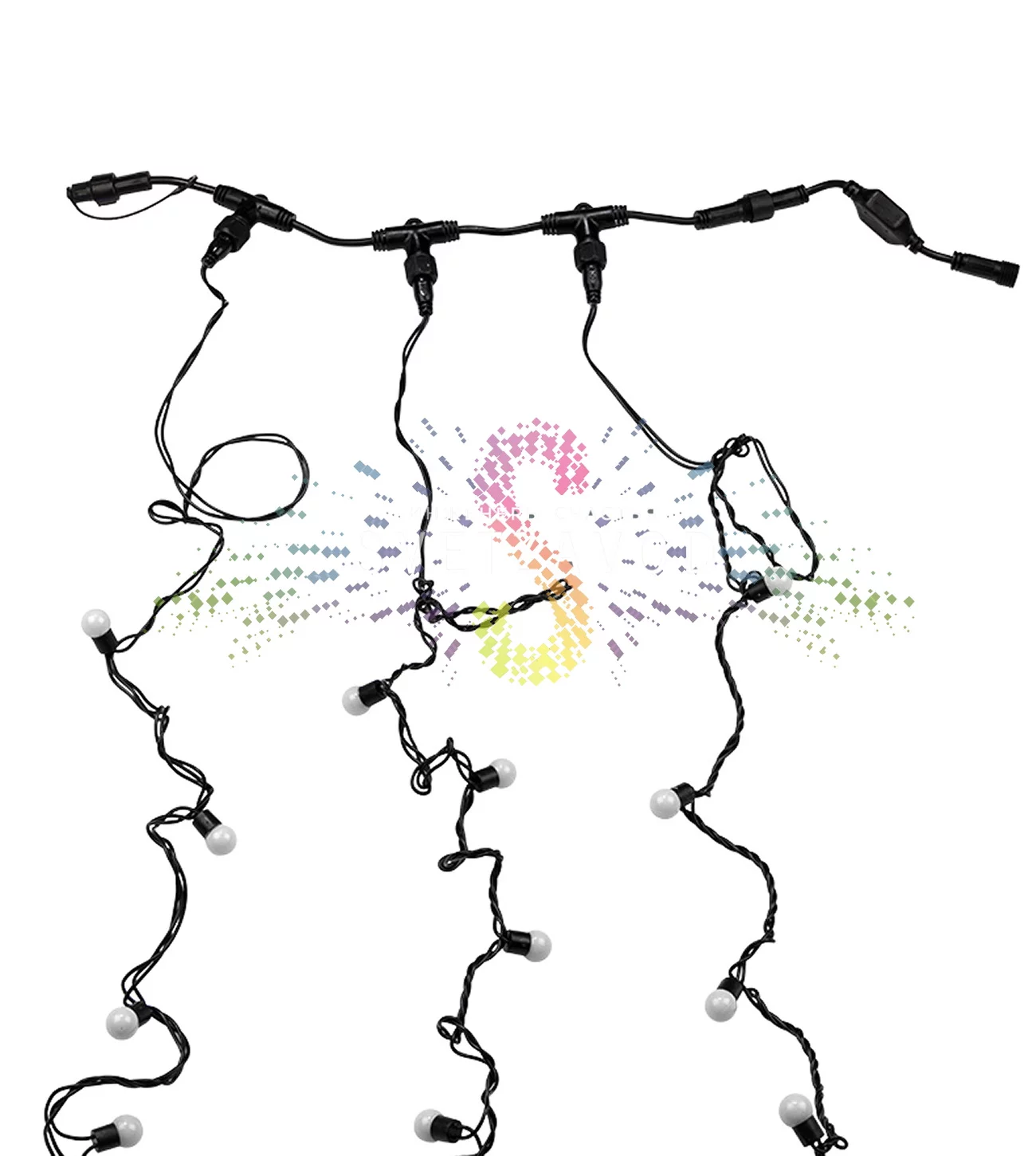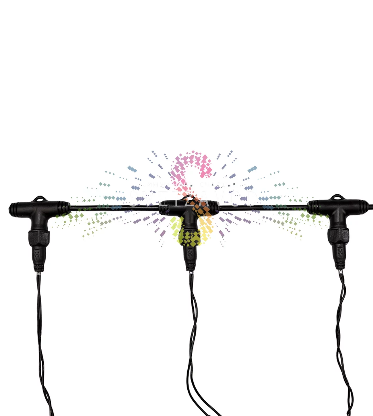 Повышенная защита IP65: Герметичные соединения и влагонепроницаемые разъемы позволяют использовать гирлянду под открытым небом в любую погоду — дождь, снег, наледь.