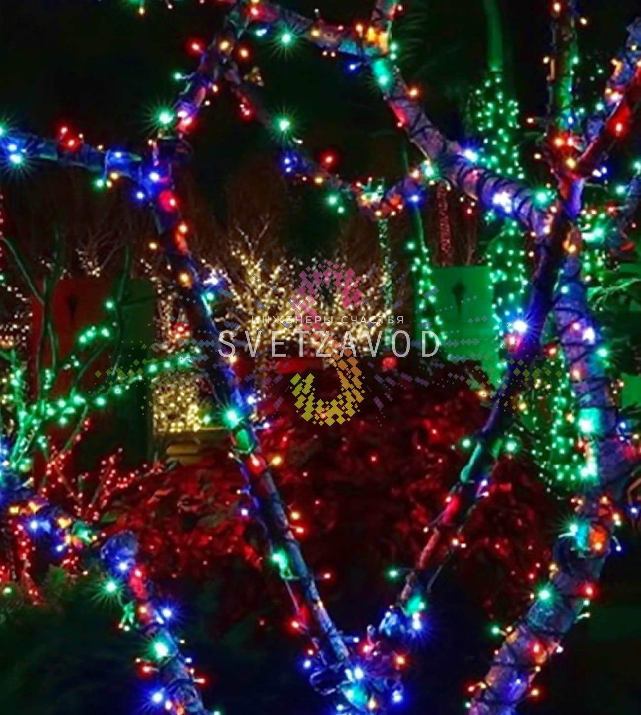 Универсальность применения: Гирлянда идеально подходит для декоративного освещения деревьев в парках, скверах и на частных территориях. Эффектно смотрится на колоннах, фасадах зданий, рекламных конструкциях и сценических площадках. Возможность комбинирования нескольких комплектов позволяет создавать масштабные световые инсталляции.