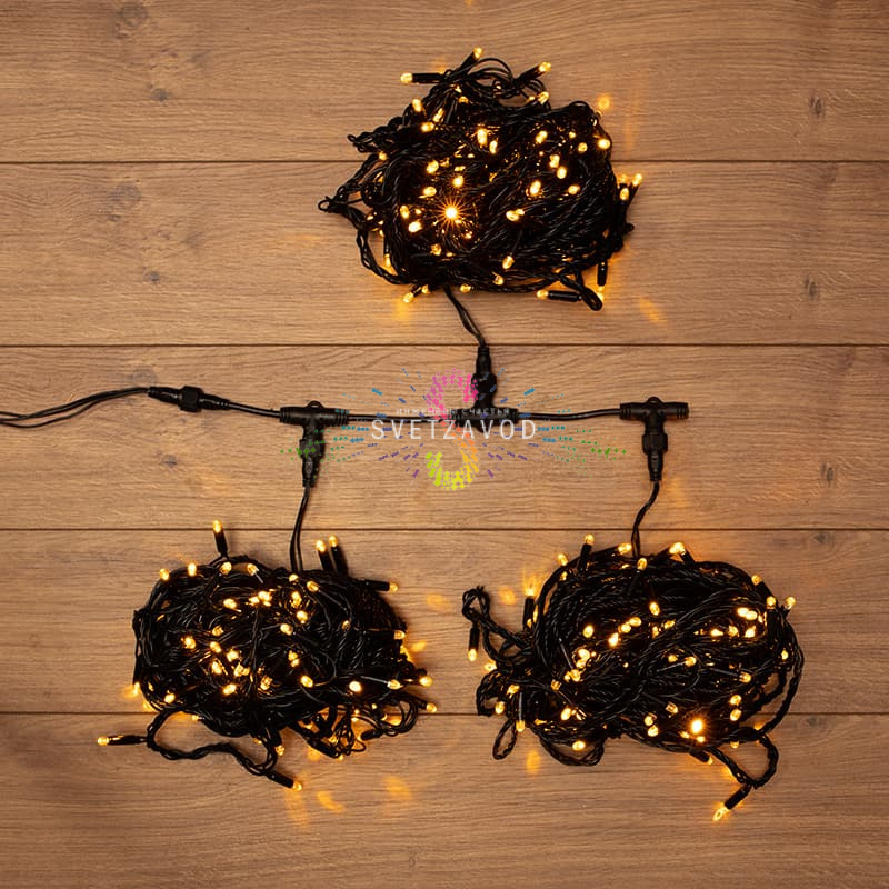 Конструкция: Провод с последовательно установленными светодиодами, три нити длиной 20 метров каждая.