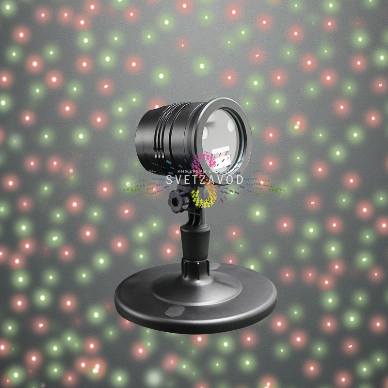 На основе лазерных лучей формируются проекции колокольчиков, елок, точек, снежинок и фигурок Деда Мороза. Есть возможность отрегулировать скорость, переключать режимы, установить таймер рабочего времени.