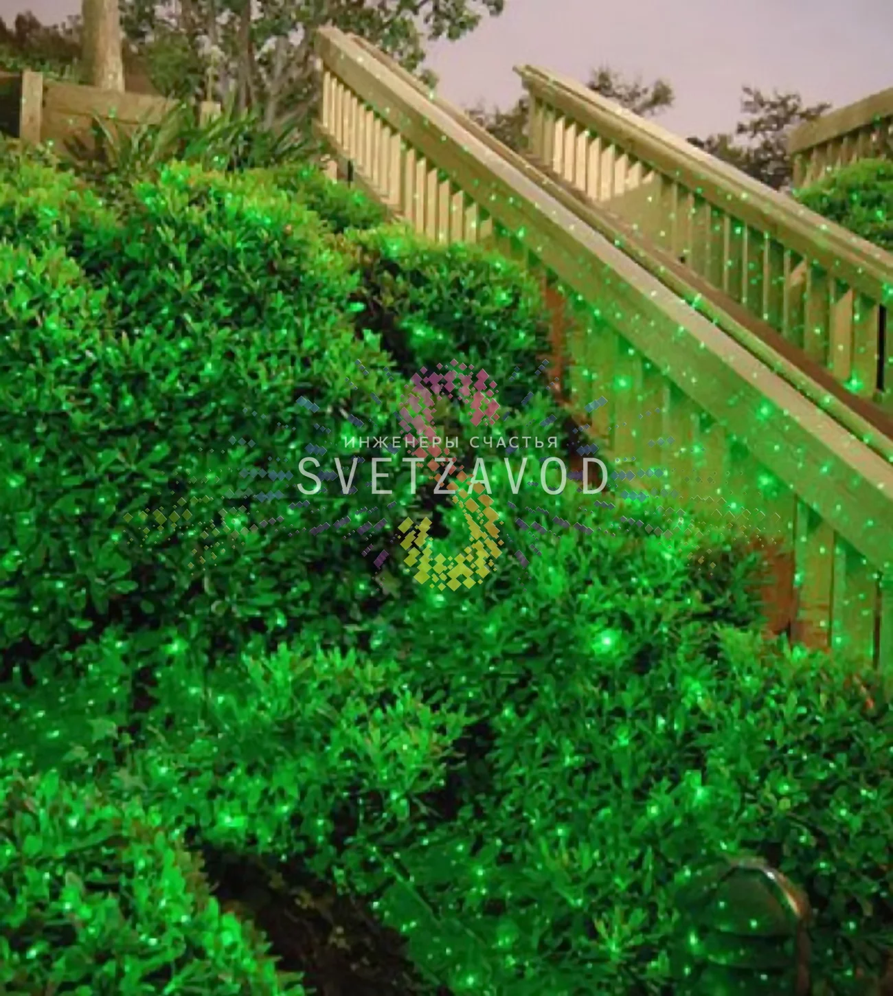 Просто установите проектор на штатив или вкрутите основание в грунт, подключите питание — и территория преобразится.