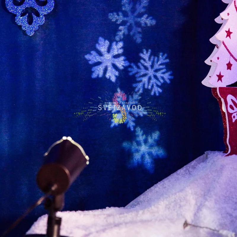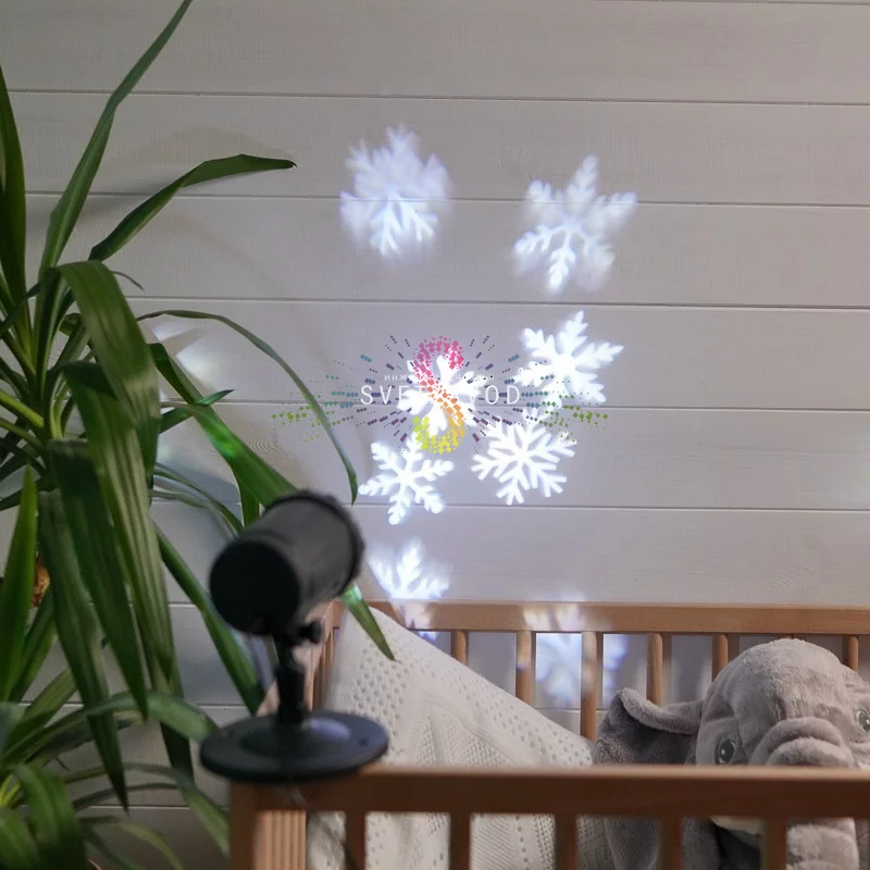 Экономия времени и сил: Монтаж занимает 5 минут: установите проектор, воткните вилку в розетку — украшение готово. Не нужно лазить по стремянкам и вешать километры гирлянд.