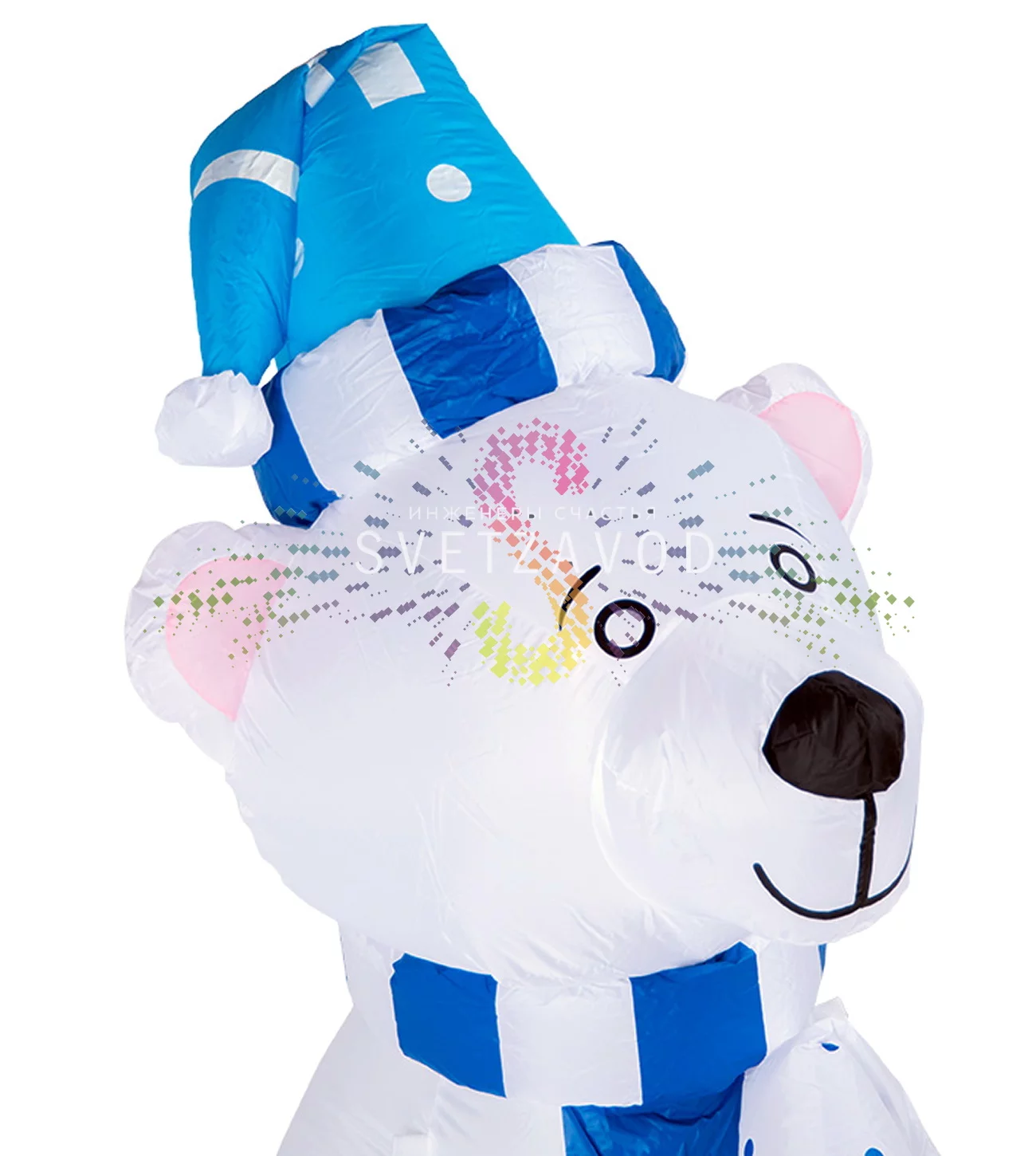 Инженерный подход: Фигура спроектирована для беспроблемной эксплуатации в российских условиях. Морозостойкий ПВХ не трескается на холоде, а система автоматической стабилизации давления в компрессоре моментально реагирует на порывы ветра, предотвращая падение или деформацию. Светодиодная подсветка (2 шт., ресурс 50 000 часов) практически не нагревается и потребляет минимум энергии.