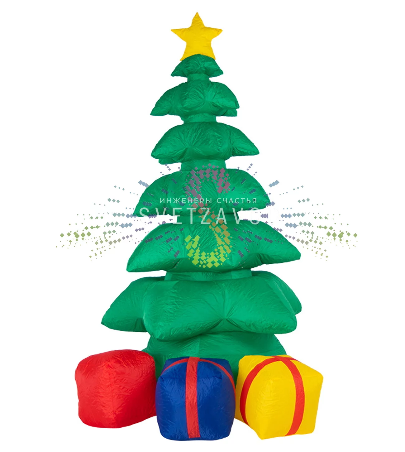 Готовое решение для декора: Современные новогодние надувные фигуры решают проблему сложного и дорогого украшения территории. Наша 3D-фигура "Подарки под елкой" высотой 240 см — это полноценный декоративный комплекс в коробке. Вам не нужно думать о поиске компрессора или адаптера — всё включено. Просто подключите, и яркий объемный элемент с теплой белой подсветкой преобразит ваш двор, витрину или помещение. Это один из самых популярных вариантов, если вы хотите надувные фигуры купить для эффектного и быстрого результата.
