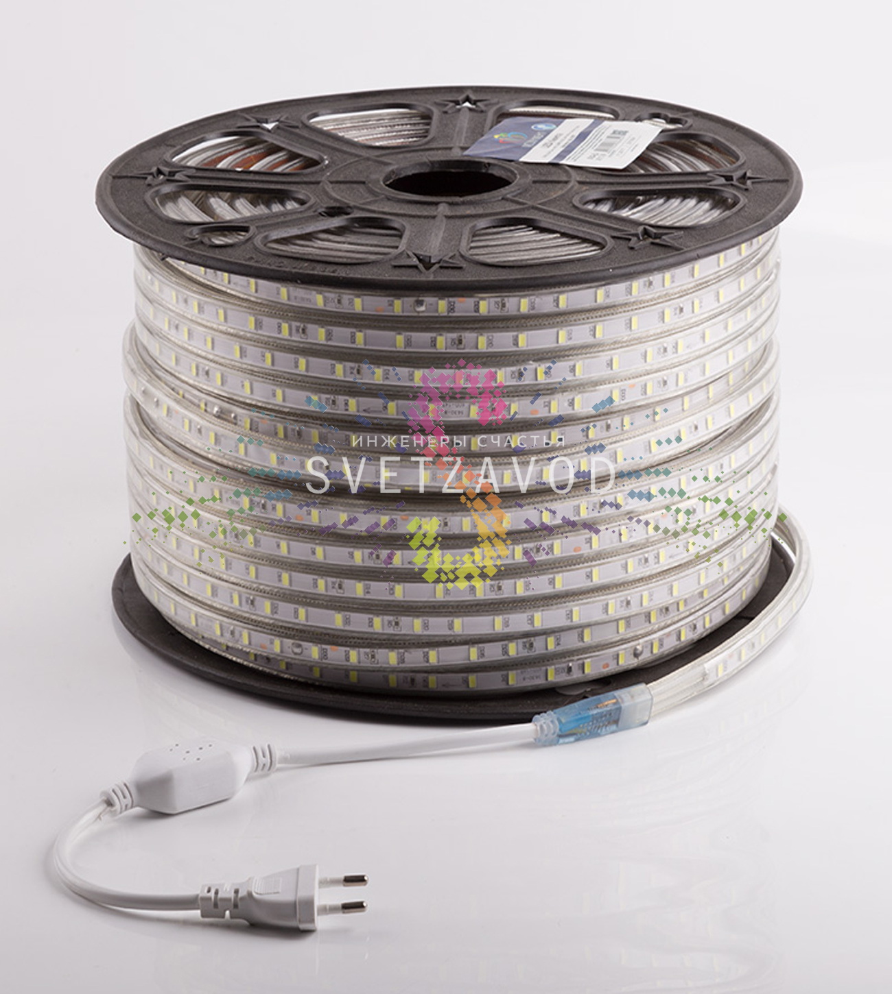 Лента поставляется в удобной коробке длиной 100 метров, что позволяет реализовать масштабные проекты освещения без лишних соединений.