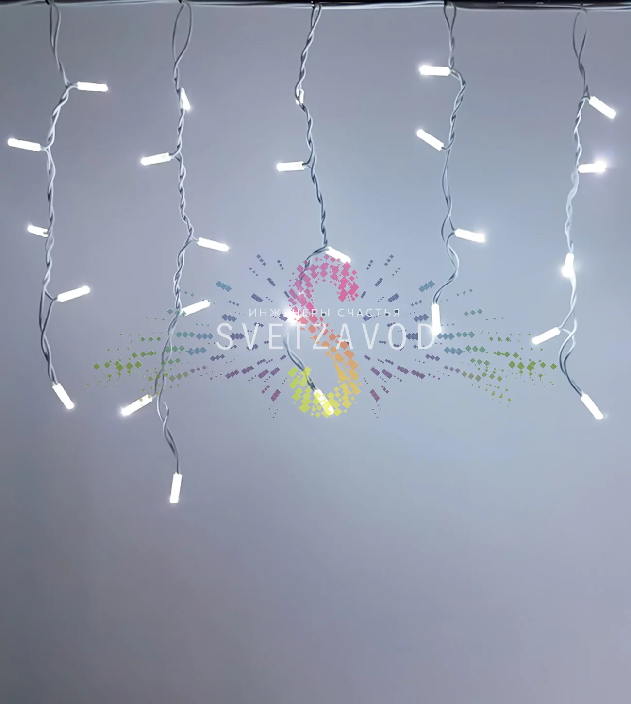 Светодиодная бахрома (Айсикл) - представляет из себя горизонтальный (основной) кабель, на котором расположены вертикальные гирлянды-подвески разной длины со светодиодами. Светодиодная бахрома может отличаться цветом светодиодов (белые, зеленые, синие, красные, желтые, мульти), цветом проводов (черный, белый, прозрачный). Данная модификация работает в режиме статического свечения (фиксинга), зато не требует специального контроллера (который покупается за дополнительную оплату). Светодиодная бахрома подключают к сети 220В через сетевой шнур, и допускается последовательное соединение друг с другом через специальный разъем. Светодиодная бахрома отличается низким энергопотреблением, высоким ресурсом свечения светодиодов и легко монтируется. Сфера применения светодиодной бахромы очень обширна. Их используют для декорирования окон, витрин, скатов крыш коттеджей, промежутков между столбами. Соединяются до 10 штук. Силовой шнур в комплекте