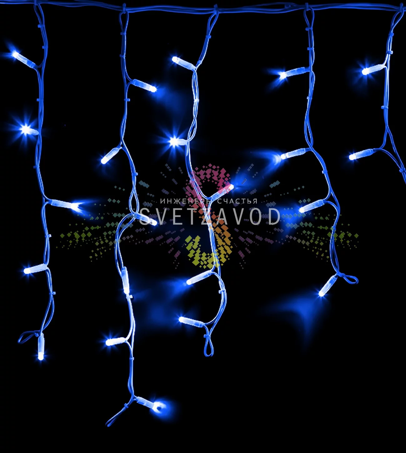 Универсальность применения: Бахрома с фиксингом — базовый и самый востребованный элемент для создания статичной подсветки. Она не мигает, обеспечивая ровное, спокойное синее свечение.