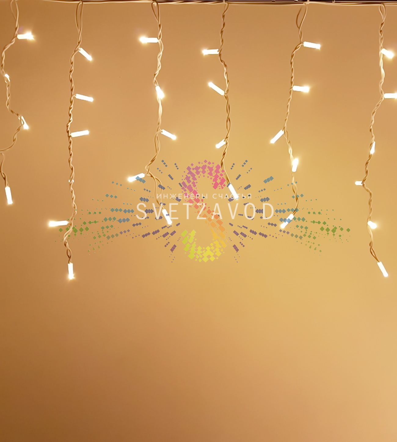 Современное световое решение: Светодиодная бахрома Айсикл представляет собой инновационный декоративный светильник для профессионального и бытового использования. Горизонтальный кабель длиной 4.8 метра оснащен вертикальными гирляндами-подвесками разной длины (50/60/50/40 см), создающими эффект мерцающих сосулек.