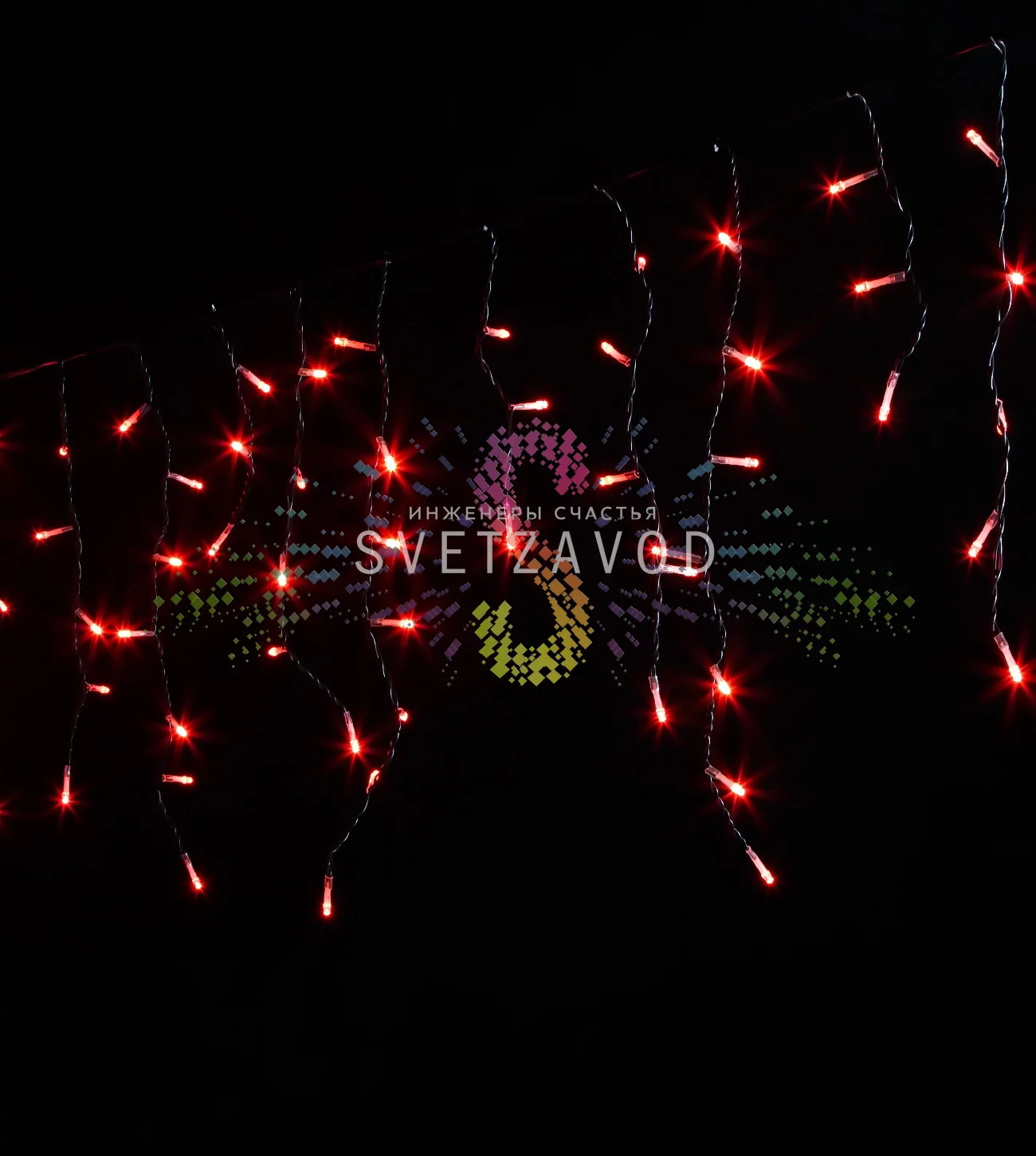 Главное преимущество светодиодной бахромы — значительная экономия. При ярком красном свечении она потребляет всего 7 Вт, что в 8-10 раз меньше, чем у аналогичных гирлянд с лампами накаливания.