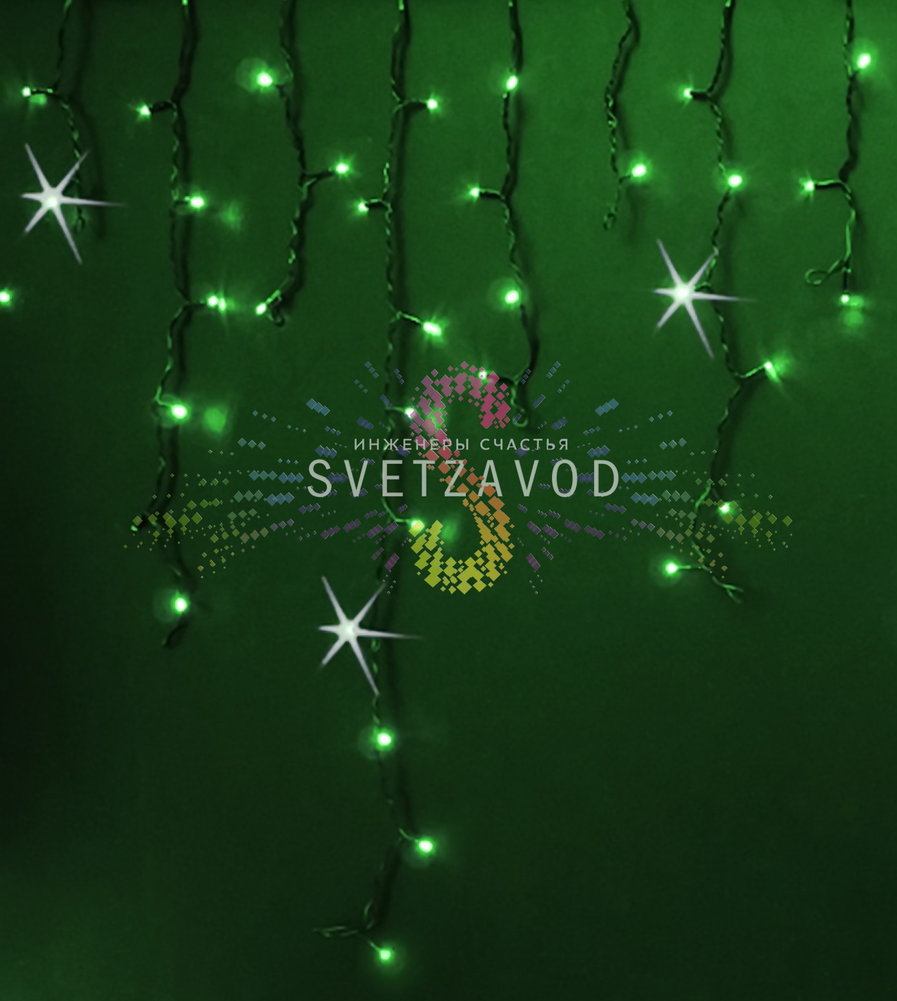 Инновационная светодиодная бахрома Айсикл: Современное решение для декоративного освещения с эффектом мерцания. Горизонтальный кабель с вертикальными гирляндами-подвесками создает элегантный визуальный эффект падающих сосулек. Зеленое свечение и черный ПВХ-кабель обеспечивают стильный внешний вид и долговечность.