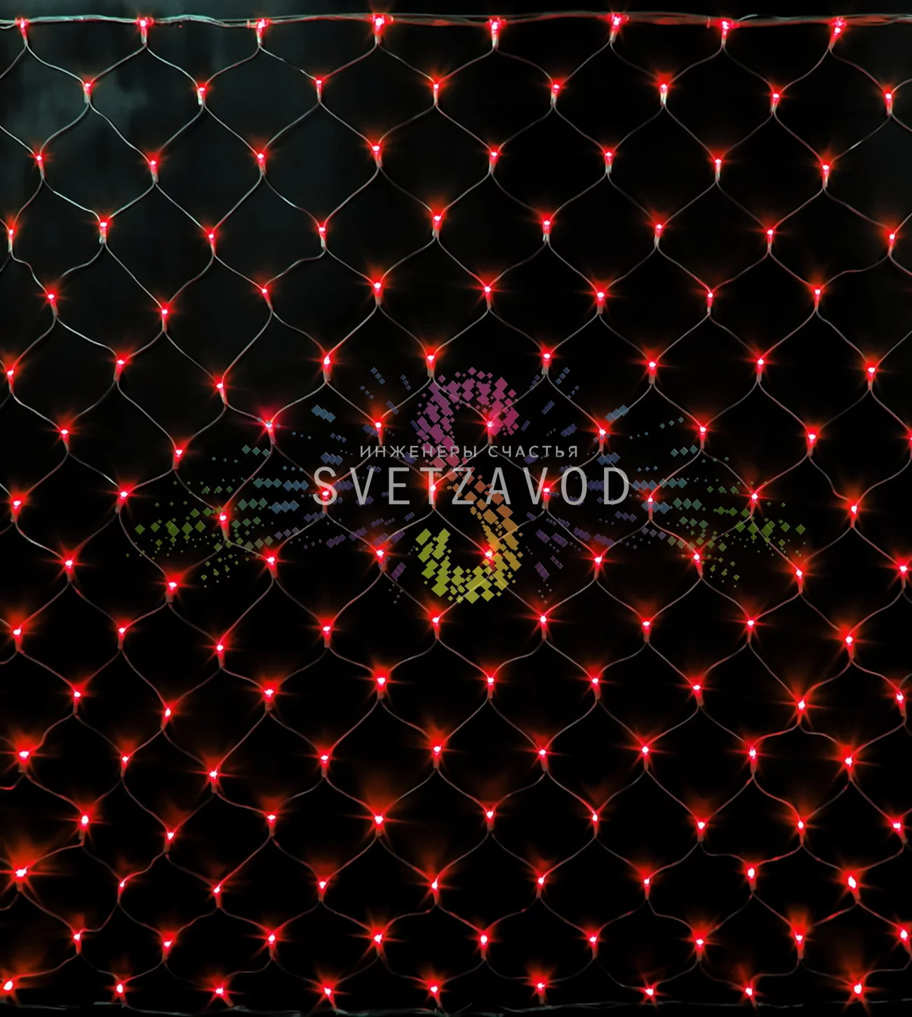 Сетка изготовлена из прозрачного ПВХ-провода, который практически невидим в дневное время, а ночью превращается в плотное полотно из 384 красных светодиодов. Благодаря степени защиты IP54 ее можно использовать как на улице, так и в помещении, не боясь дождя или пыли. Световая сетка цена которой полностью оправдана качеством, станет выгодным вложением для создания праздничной атмосферы на много сезонов вперед.
