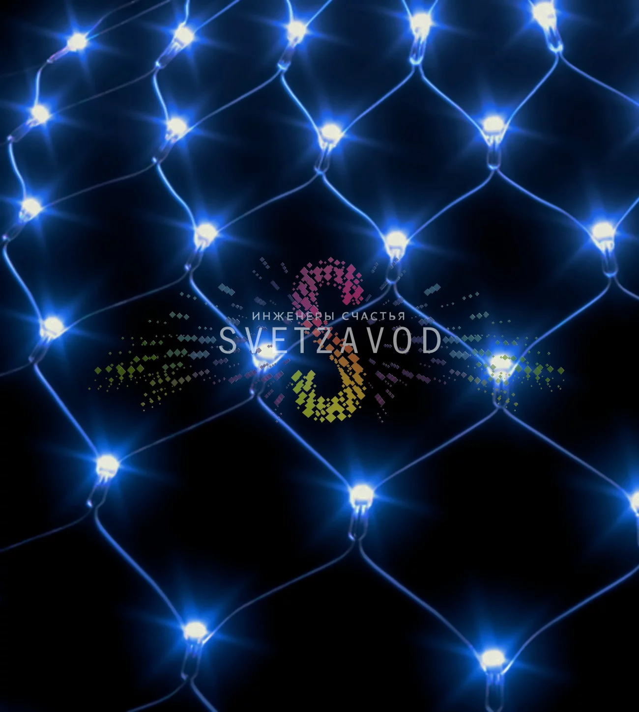 Сетка 2х3 метра с комбинацией синего и белого свечения создает глубокий, насыщенный световой эффект. Прозрачный ПВХ-провод практически невидим в дневное время, что делает акцент именно на свете, а не на конструкции. Световая сеть цена которой оправдана долгим сроком службы, станет выгодным вложением для частного и коммерческого использования.
