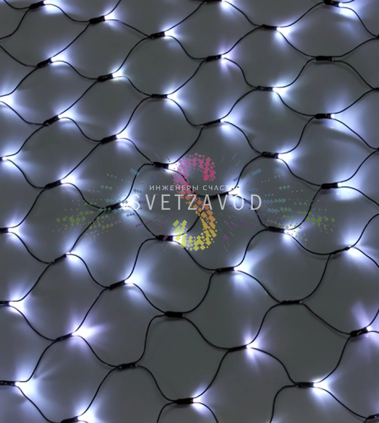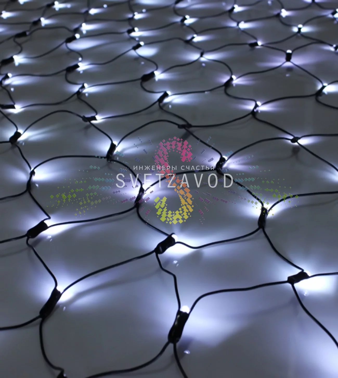 Технический разбор: Сетка изготовлена из черного ПВХ-провода, который устойчив к ультрафиолету и перепадам температур от -40°C до +50°C. 540 ярких DIP-светодиодов обеспечивают равномерное свечение и срок службы до 50 000 часов.