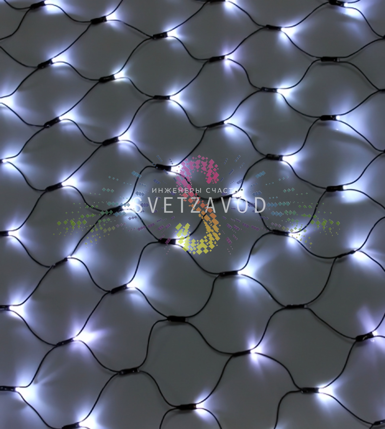 Почему выбирают нашу сетку: Низкая цена световой сетки сочетается с качеством. Влагозащита IP54 гарантирует работу в дождь и снег. Прочный ПВХ-кабель, устойчивые к перепадам температур светодиоды.