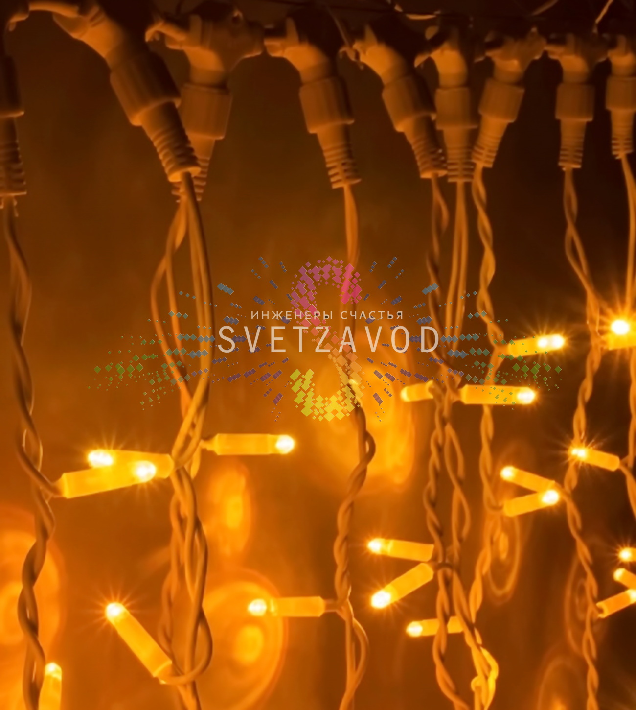 Гирлянда работает от стандартной сети 220В, что делает ее подключение простым и универсальным. Желтый цвет свечения создает теплую и уютную атмосферу.