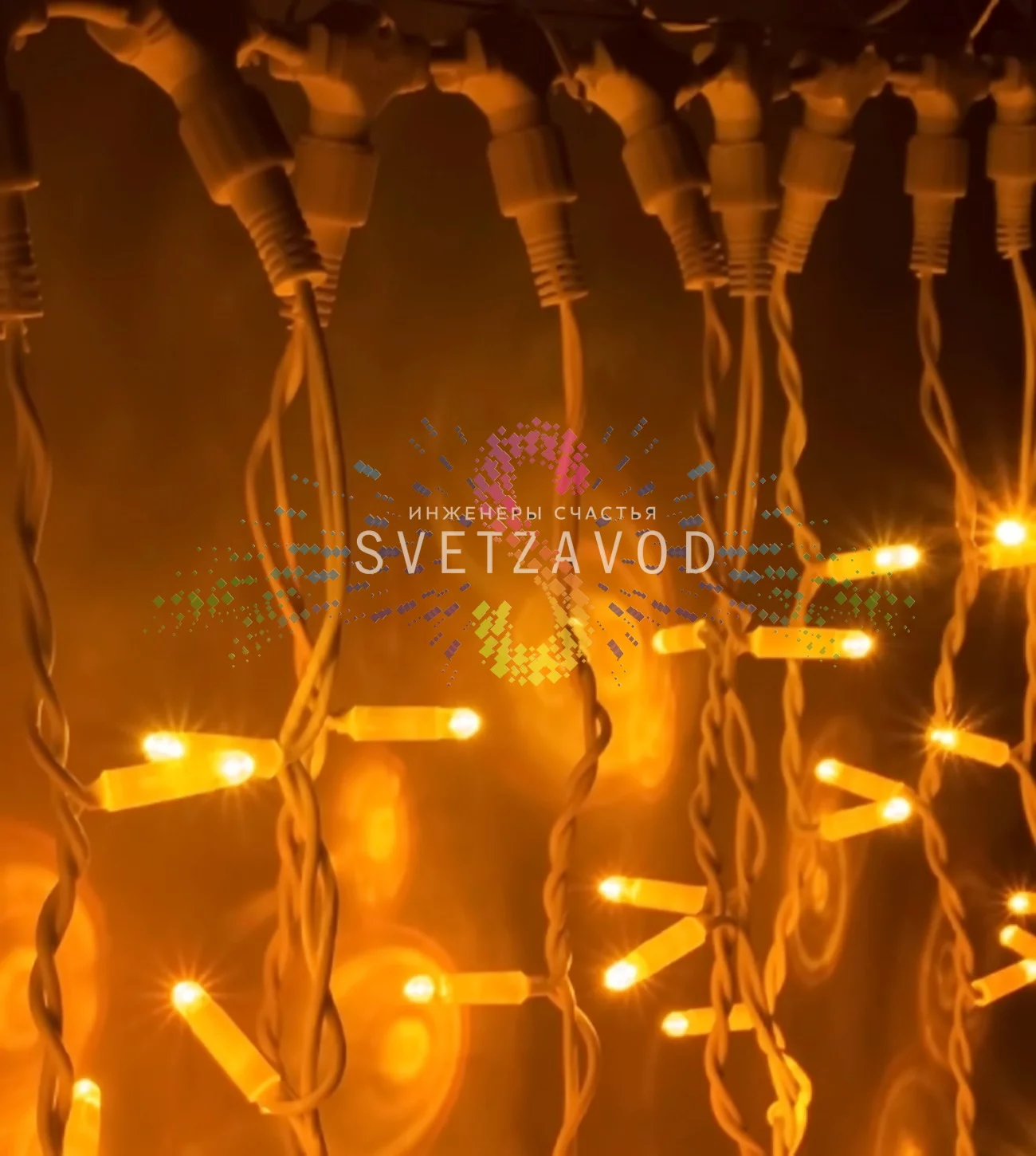 Этот световой занавес создает плотную, равномерную стену желтого света, идеальную для акцентного декора и зонирования пространства.