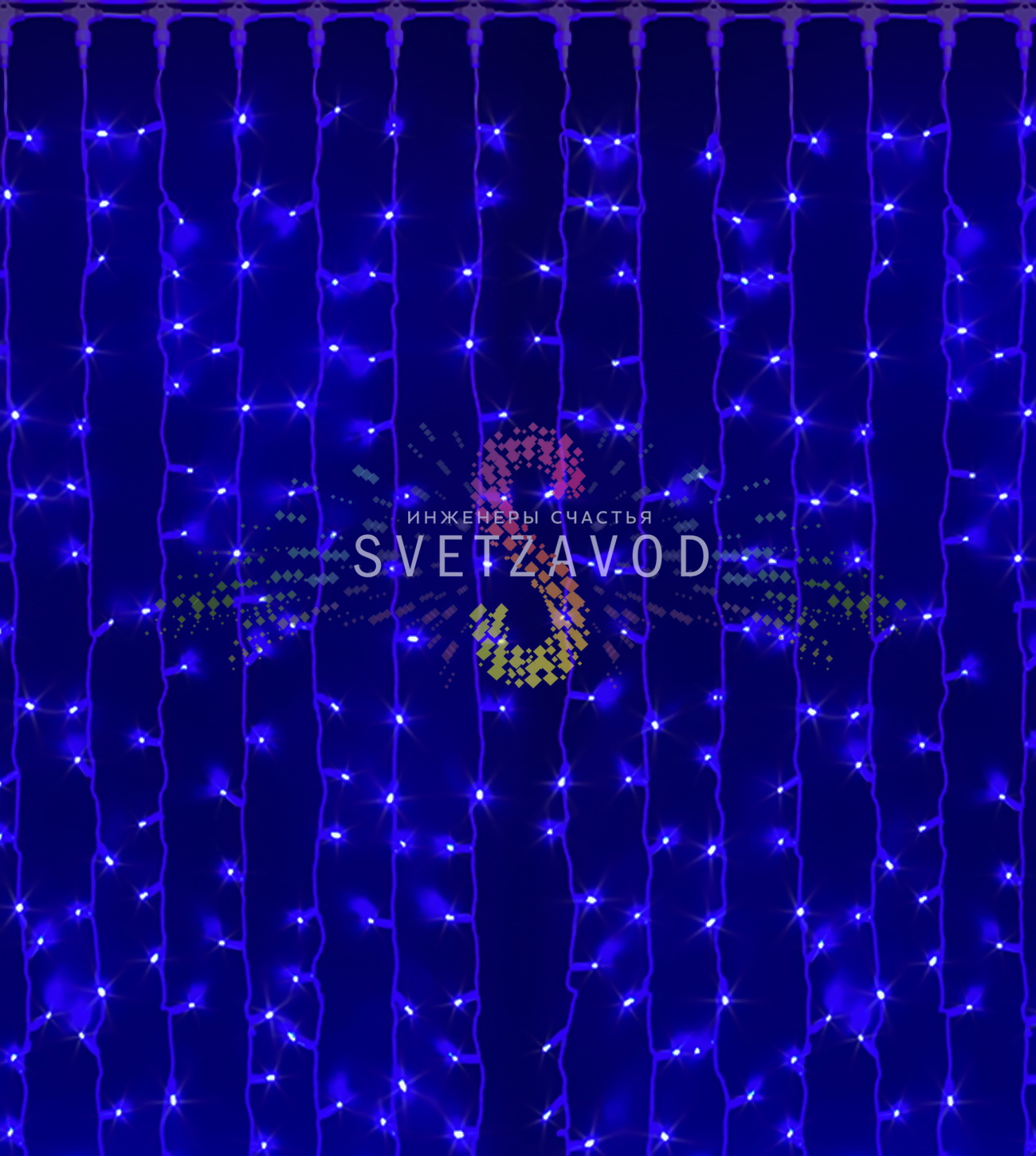 Этот световой занавес состоит из горизонтального шлейфа с вертикальными нитями, создающими эффект падающего дождя.
