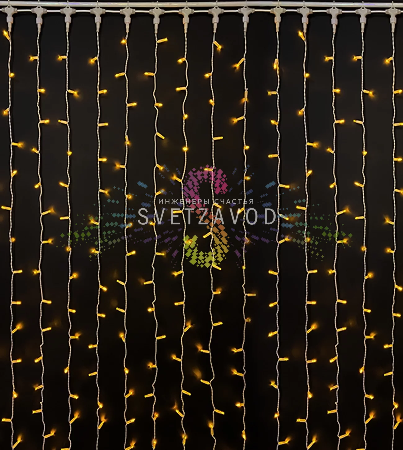 Решение для яркого оформления: Светодиодный дождь Rich Led 2х2 метра — это готовое решение для декоративной подсветки фасадов, витрин, сцен и интерьеров. Он создает эффект плотного светового потока, который привлекает внимание и формирует праздничную атмосферу. Модель с желтым свечением и фиксингом (постоянным горением) идеально подходит для создания статичных, но очень выразительных световых акцентов.