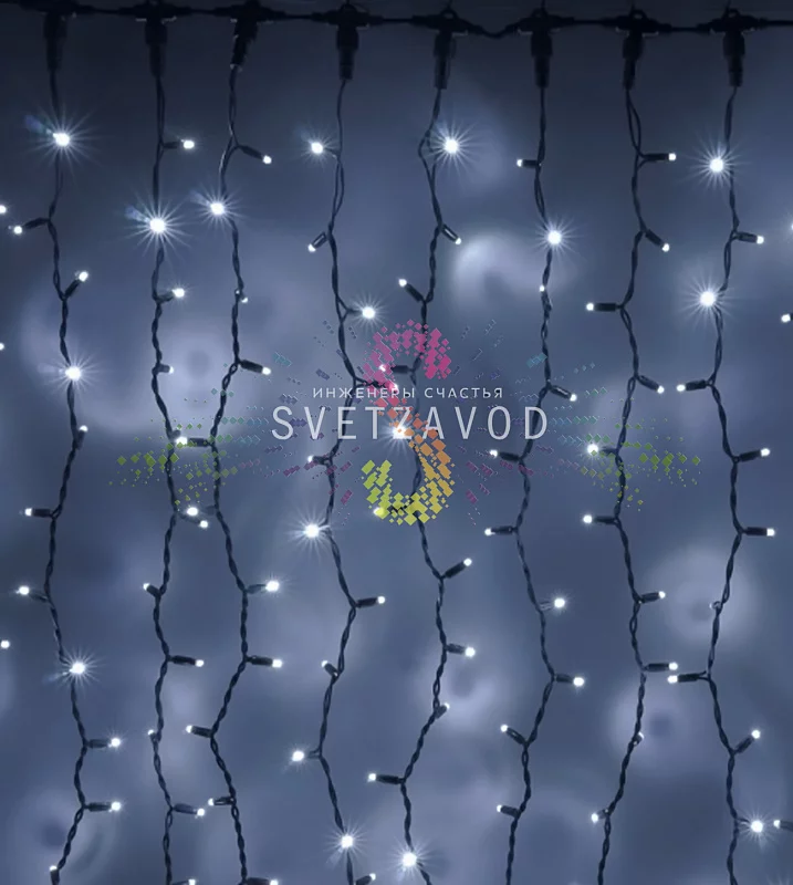 Современное световое решение: Светодиодный занавес "Дождь" создает эффектную праздничную атмосферу с мерцающими переливами. Идеально подходит для декорирования интерьеров, витрин, сцен и открытых пространств благодаря защите IP65.