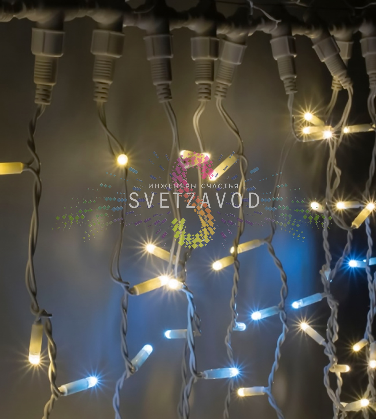 Универсальность применения: Световой занавес идеально подходит для декорирования фасадов зданий, витрин магазинов, сцен, свадебных залов и ресторанов. Может использоваться для создания световых арок, обрамления оконных и дверных проемов, оформления перил лестниц и создания праздничной атмосферы на любом мероприятии.