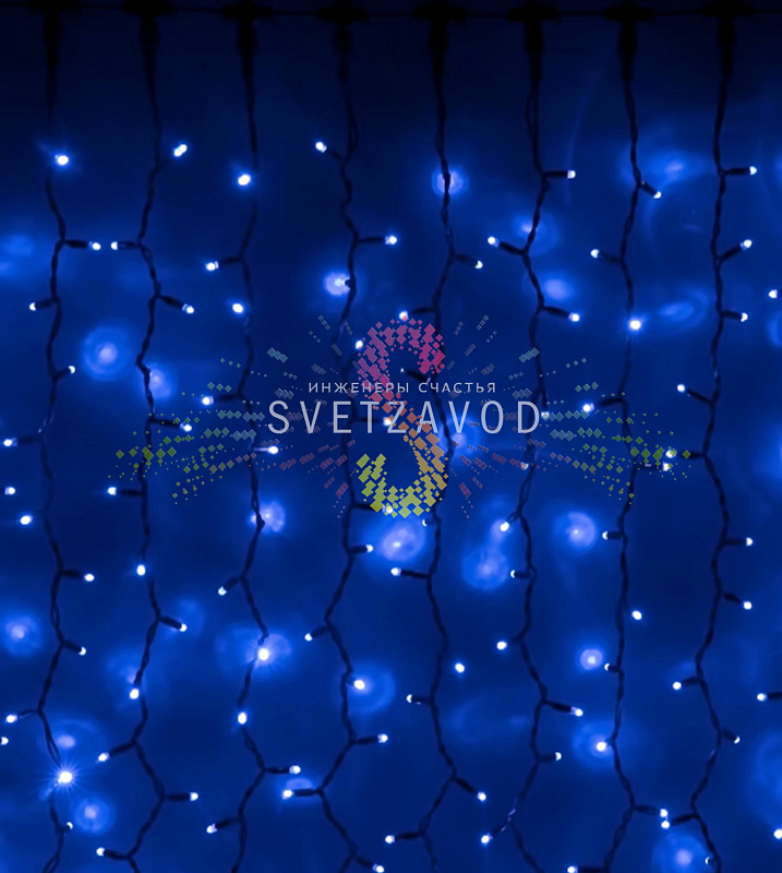 Занавес состоит из горизонтального шлейфа длиной 2 метра с 20 вертикальными нитями по 3 метра каждая. На каждой нити расположено по 37 светодиодов. Черный провод из ПВХ не только эстетичен, но и обеспечивает дополнительную защиту.