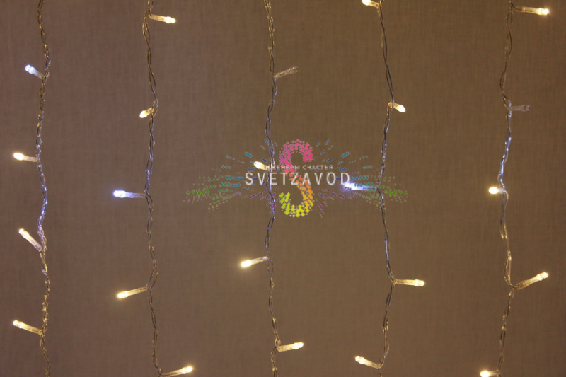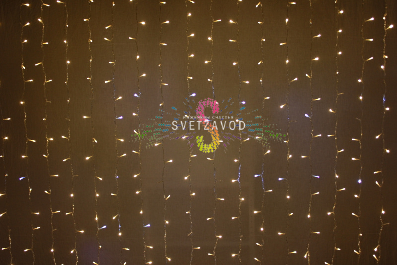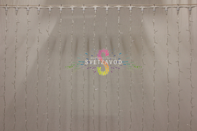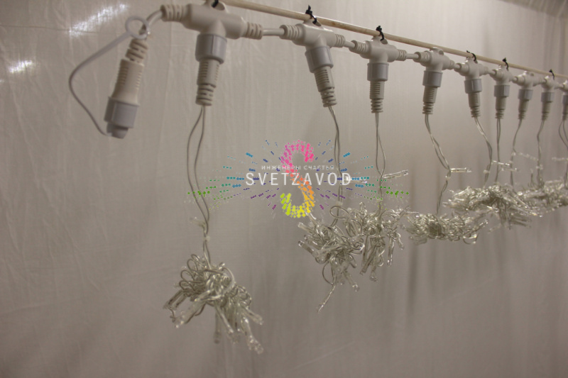 Этот световой занавес состоит из горизонтального шлейфа с вертикальными нитями, на которых равномерно расположены яркие светодиоды. Мерцающий режим работы добавляет динамики и волшебства в любое пространство.