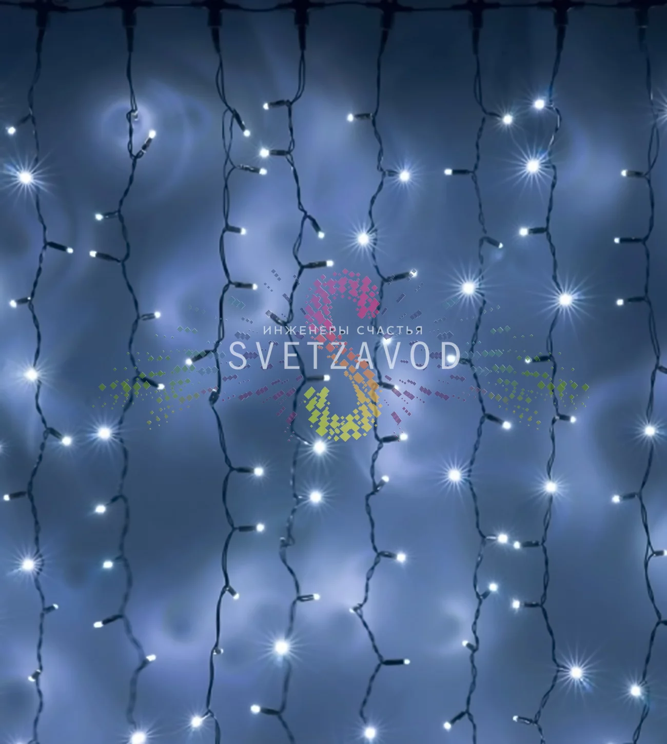 Решение — профессиональный светодиодный занавес «дождь» 2х6 метров. Это готовый световой модуль с фиксированным креплением и защитой IP65. Он создает эффект плотной световой стены или водопада, потребляя минимум энергии за счет использования светодиодов и безопасного напряжения 24В. Идеален для коммерческого декора и праздничного оформления.