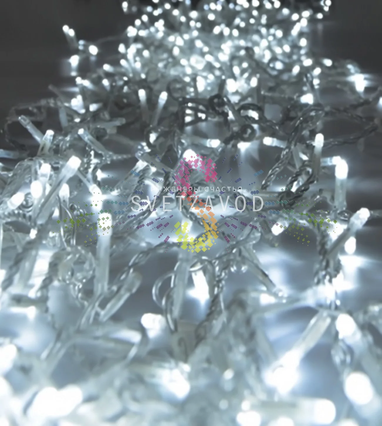 Светодиодный дождь Водопад: Инновационная светодиодная завеса с эффектом падающих капель создает захватывающую визуальную динамику. Комплект включает 10 нитей по 1 метру каждая, прозрачный ПВХ провод, контроллер с функцией чейзинг и трансформатор на 24В для безопасной работы.