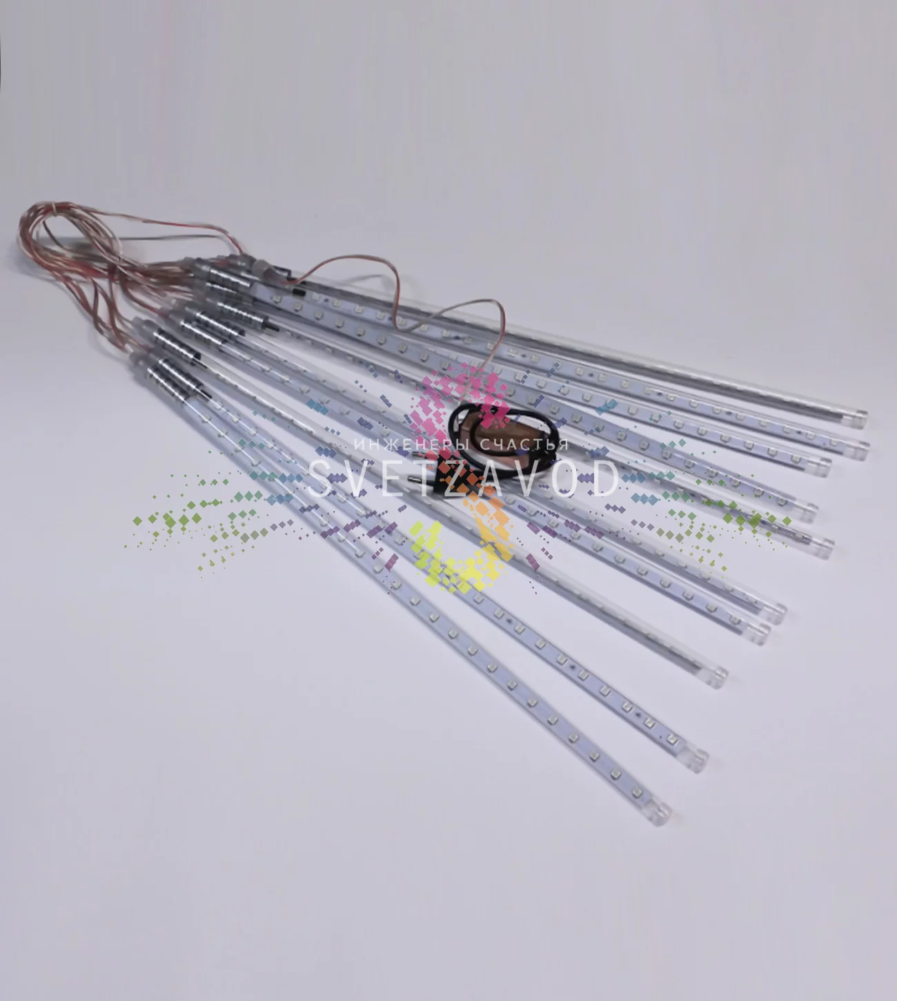 Каждая из 540 светодиодов SMD2835 впаяна в прочную схему, а контроллер создает плавный эффект стекания света, имитирующий таяние. Прозрачный ПВХ провод и пластиковые сосульки устойчивы к ультрафиолету и перепадам температур от -40°C до +50°C.