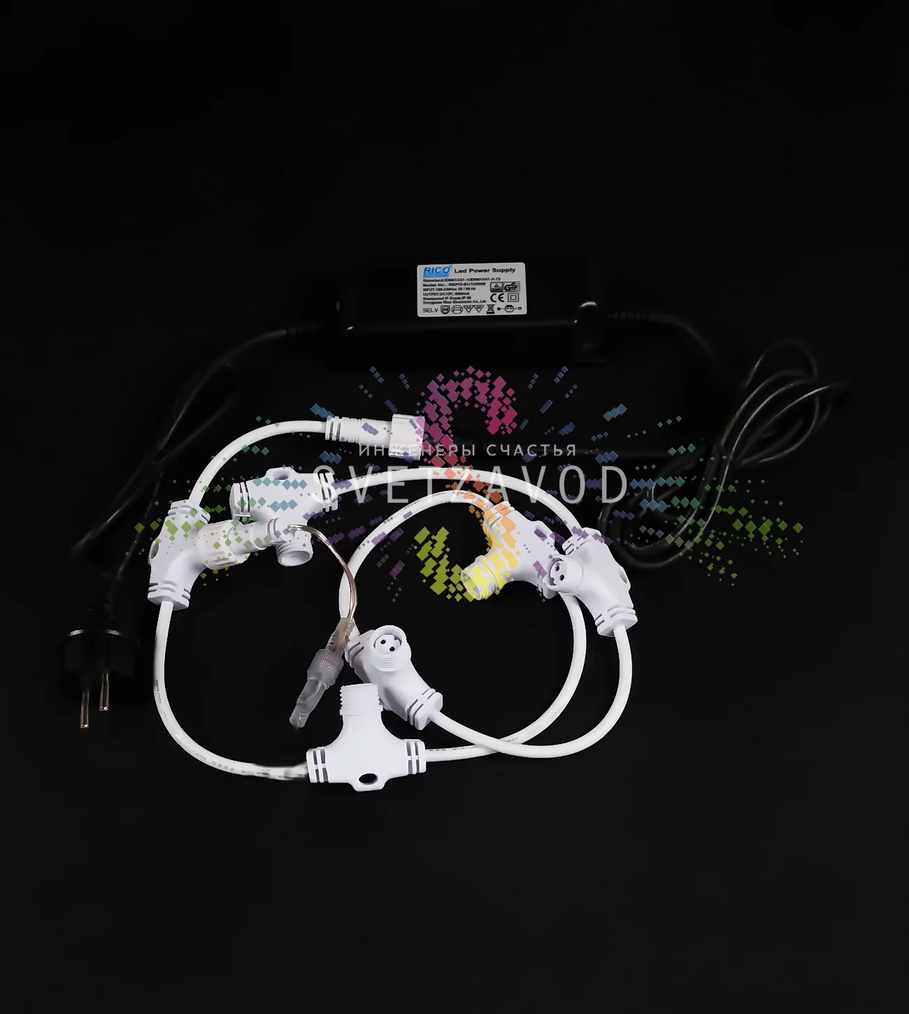 Безопасность прежде всего: Работа от низкого напряжения 12В делает шнур абсолютно безопасным для людей и животных. Даже в случае повреждения изоляции риск поражения электрическим током минимален.