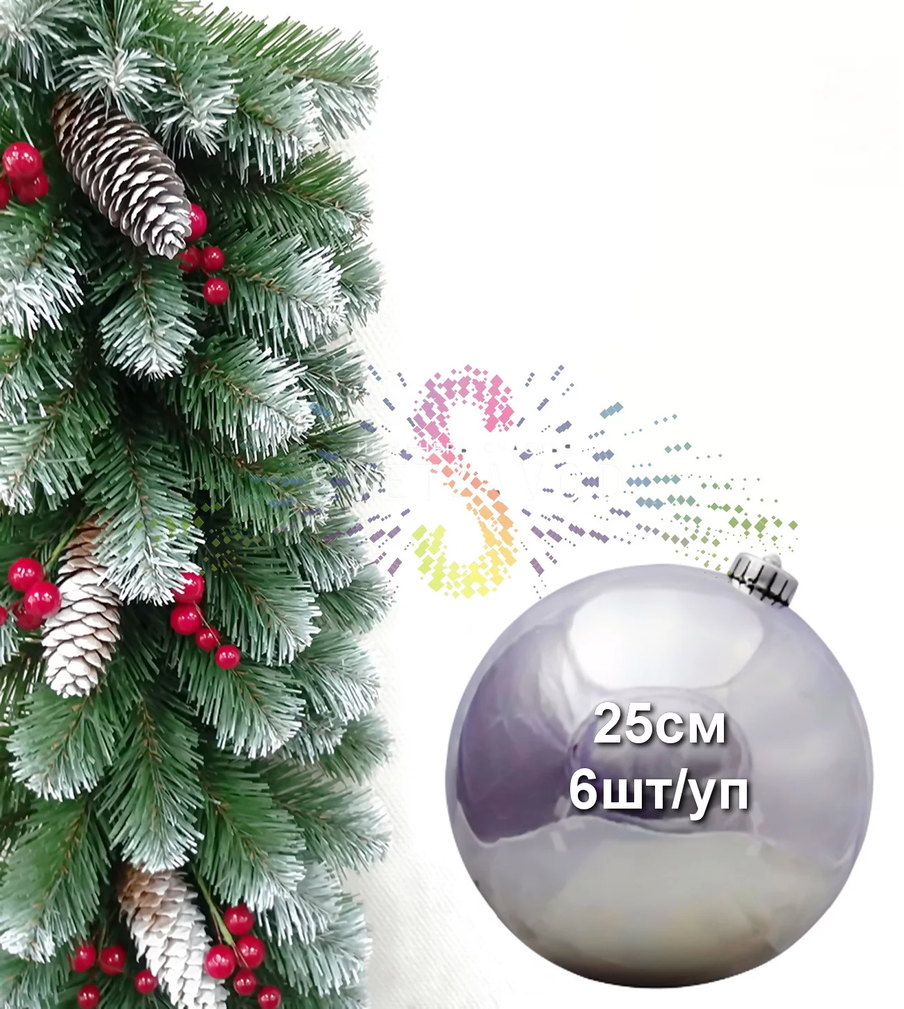 Современное новогоднее украшение: Набор елочных шаров 25см в серебристом глянцевом исполнении создает роскошную праздничную атмосферу. Эти пластиковые шары отличаются прочностью и долговечностью, что делает их идеальным выбором для многократного использования.
