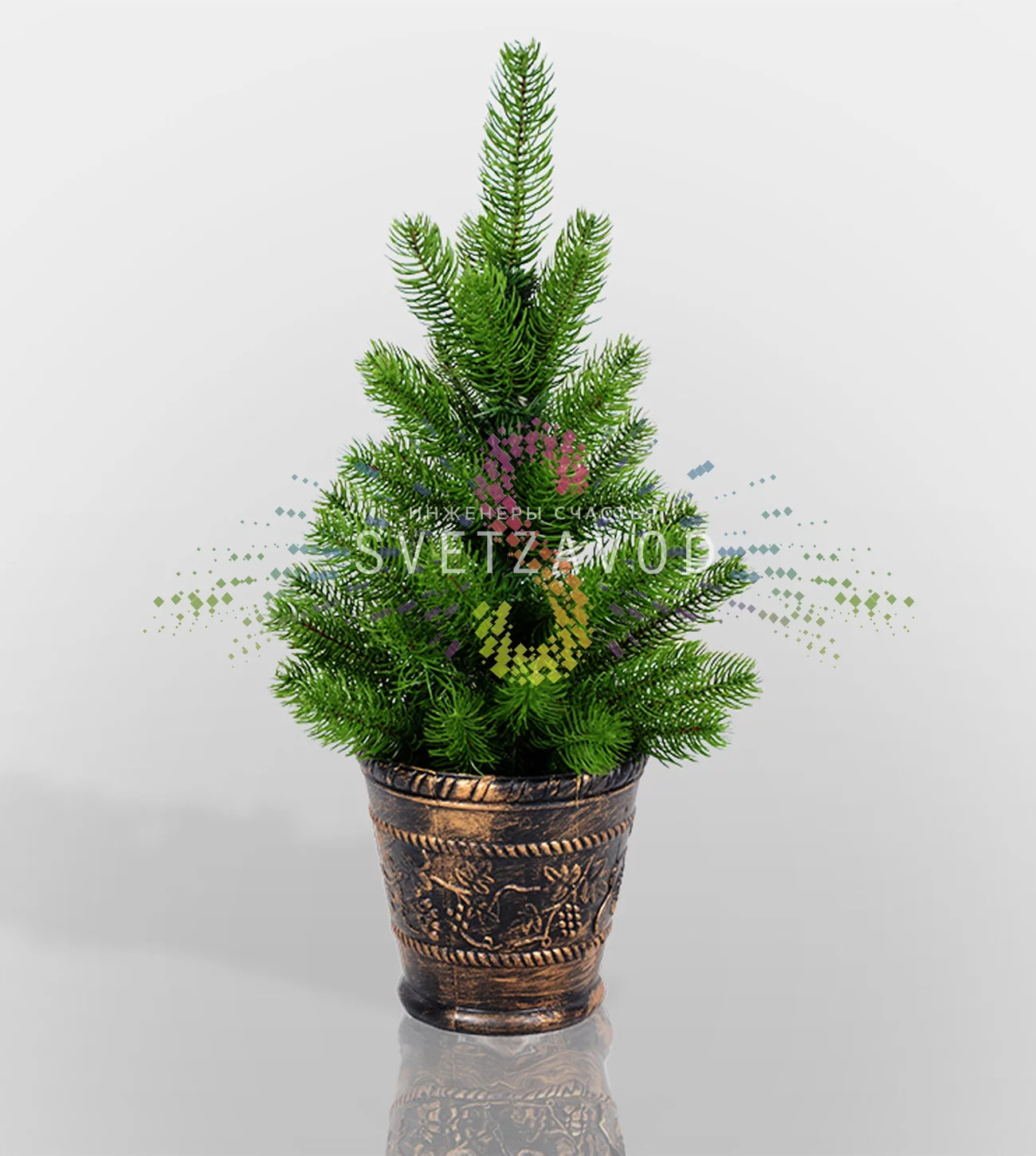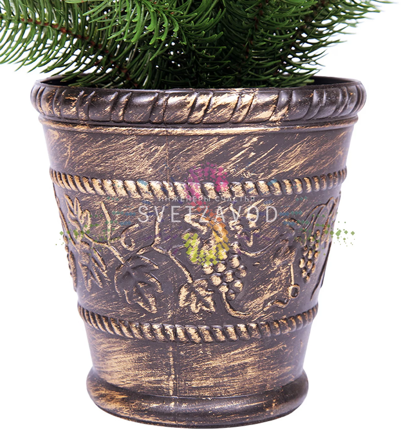 Технология литья: Ветки и хвоя изготовлены методом литья из прочных полимеров. Это обеспечивает высокую детализацию каждой иголочки для максимальной реалистичности, а также исключает деформацию и выцветание. Конструкция устойчива за счет веса и формы горшка.