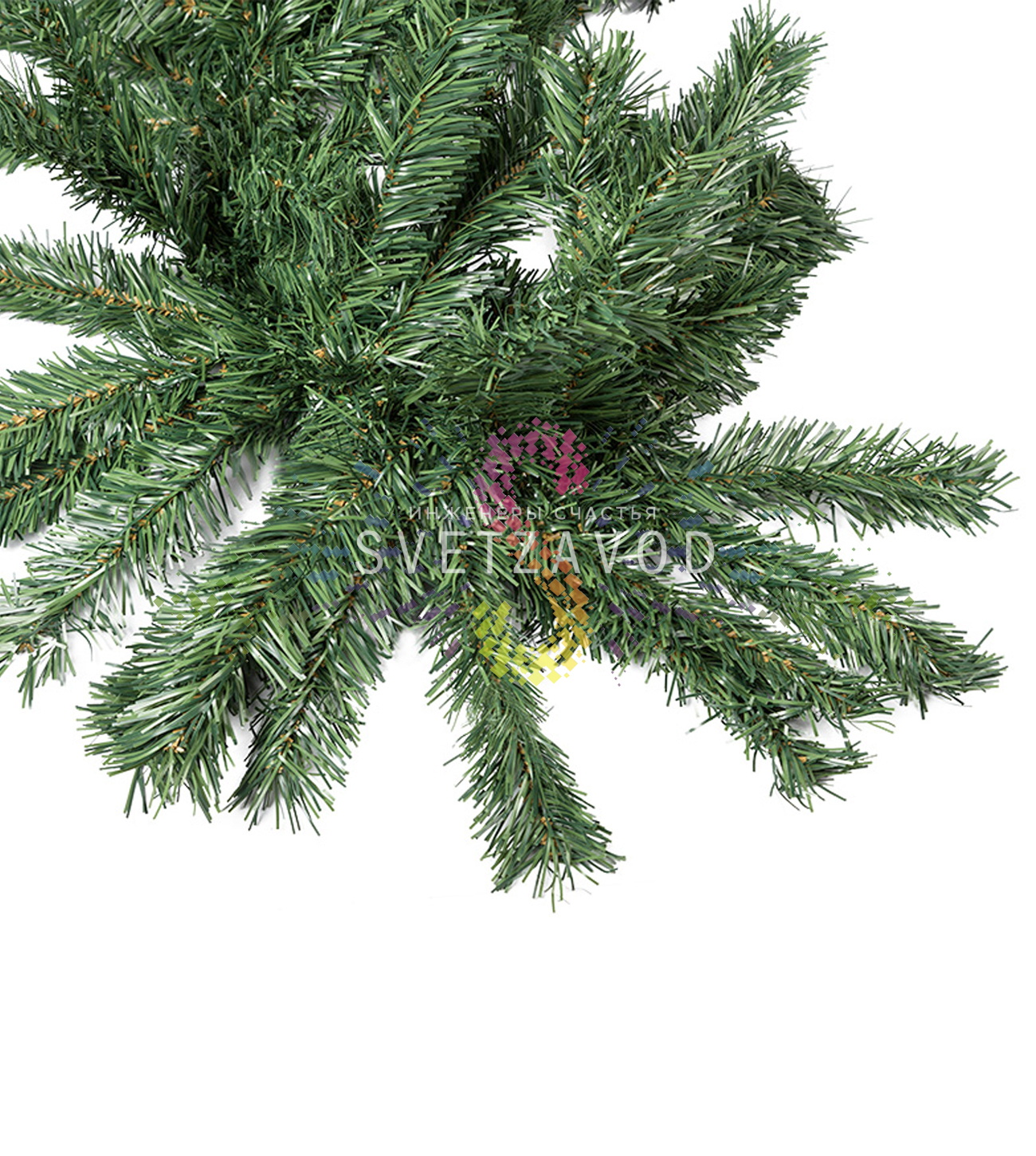 Современные материалы: Ветки изготовлены из высококачественного ПВХ, который сохраняет форму и цвет даже при перепадах температур и влажности. Темно-зеленый цвет хвои выглядит естественно и насыщенно, создавая эффект настоящей еловой ветви.